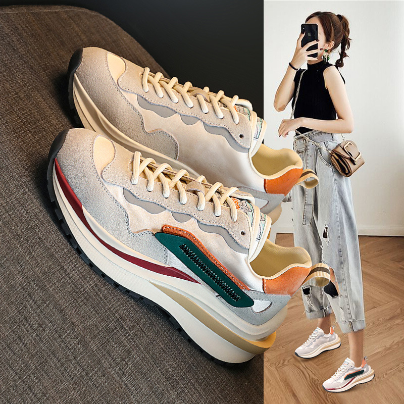 Туфли Форрест Гамп из натуральной кожи, новинка 2021 года, осень/зима, новые универсальные повседневные вафельные плюшевые кроссовки для папы, спортивная женская обувь с тонкой талией.