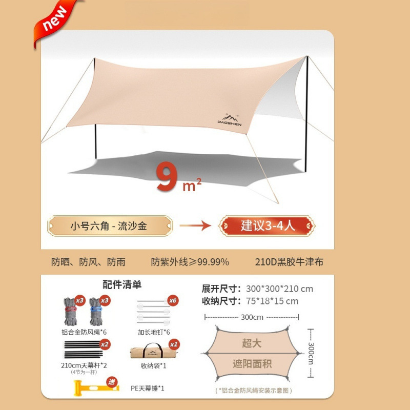 9 ㎡ Quicksand Gold [Шестиугольный квадратный серебряный клей] Маленький/стержень 2,1 м/рекомендуется для 2–4 человек