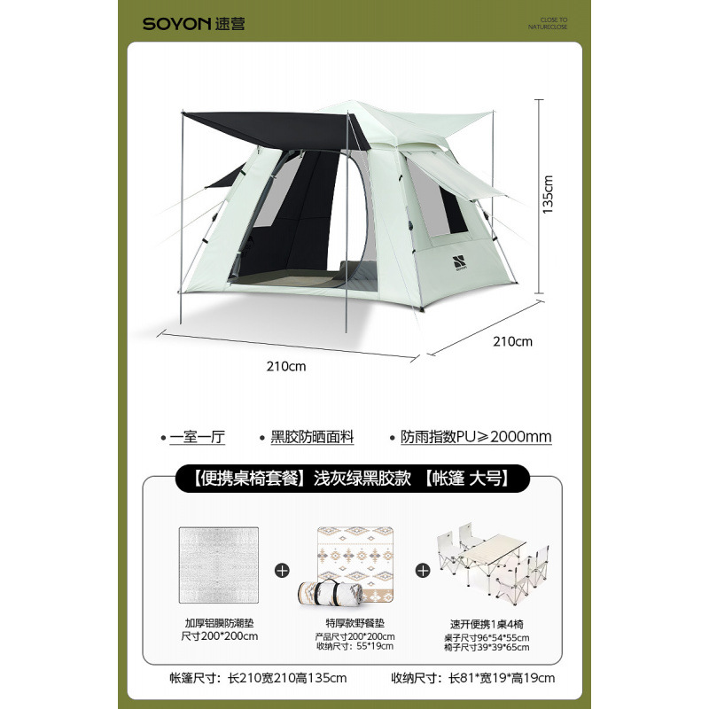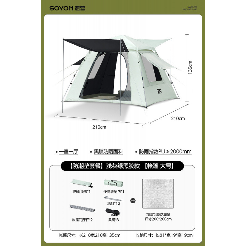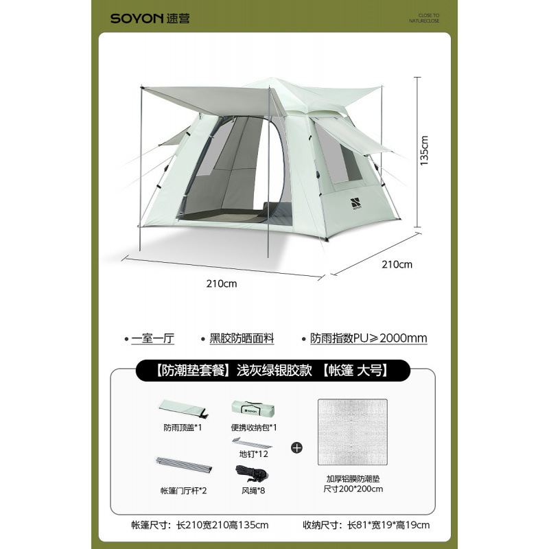 Серо-зеленый-[Влагостойкий коврик] Палатка с серебряным клеем [Большой размер, 3-5 человек]