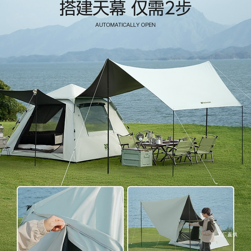 Главная страница > Быстрая установка палатки, портативная складная палатка для кемпинга на ночь, непромокаемая, утолщенная крыша, полный комплект для кемпинга «два в одном»