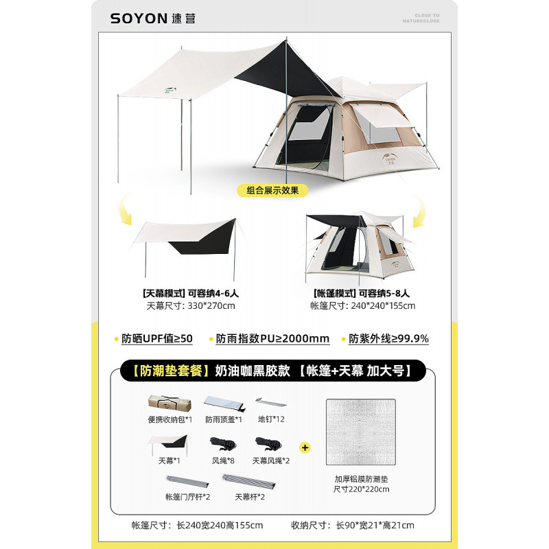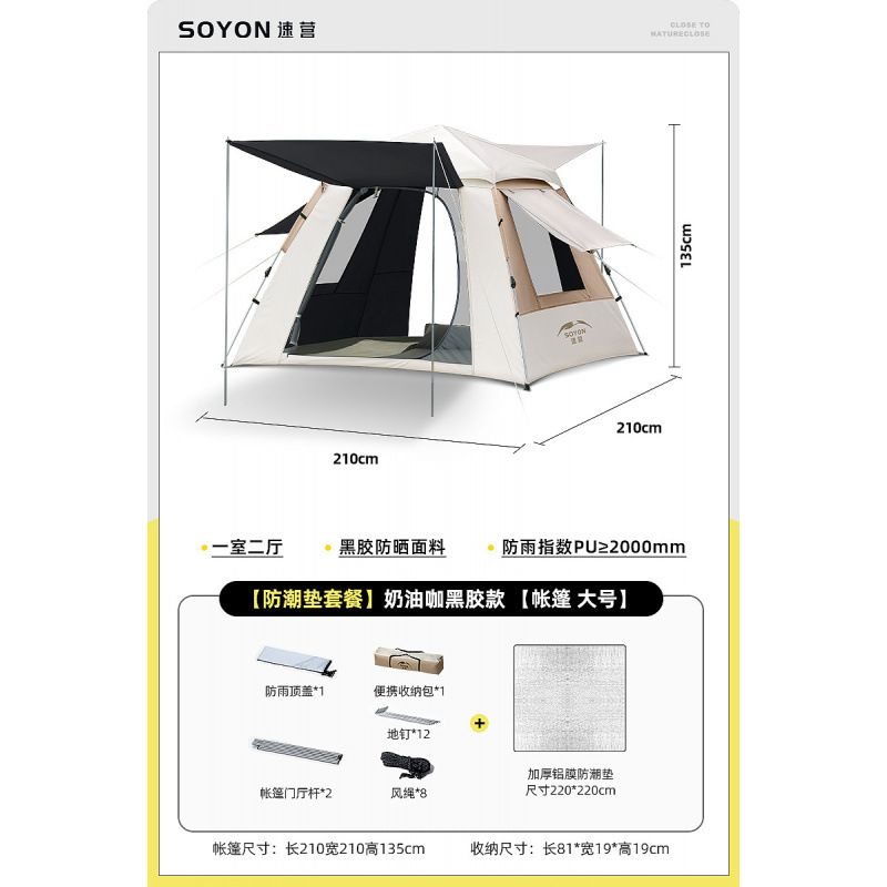 Быстрая установка палатки, портативная складная палатка для кемпинга на ночь, непромокаемая, утолщенная крыша, полный комплект для кемпинга «два в одном»