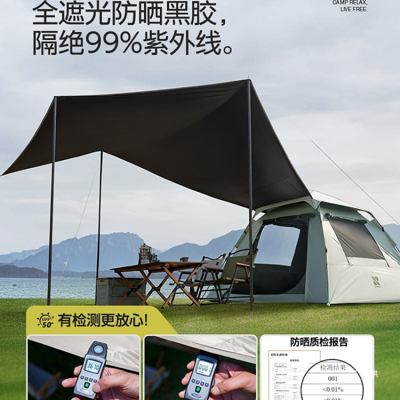 Хаки-[Влагозащищенный коврик] Защита от солнца, черная пластиковая палатка + навес [большой размер]