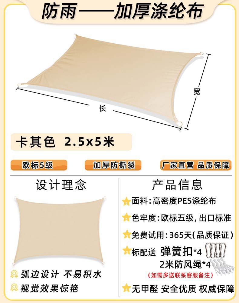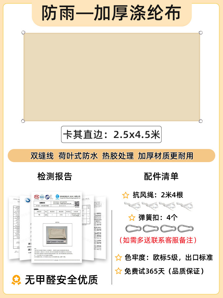 [Прямой край] Хаки 2,5x 4.5m [Недавно модернизированная водонепроницаемая технология горячего клея] 168 г улучшенной ткани европейского стандарта уровня 5