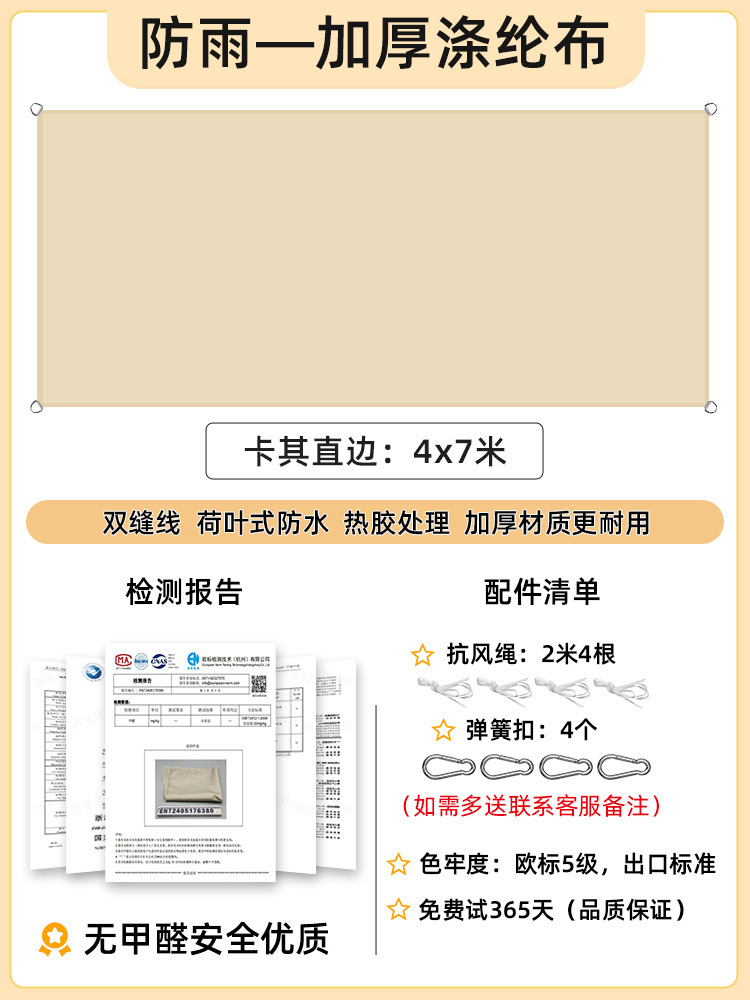 [Прямой край] Хаки 4x 7m [Недавно модернизированная технология водонепроницаемого горячего клея] 168 г улучшенной ткани европейского стандарта уровня 5