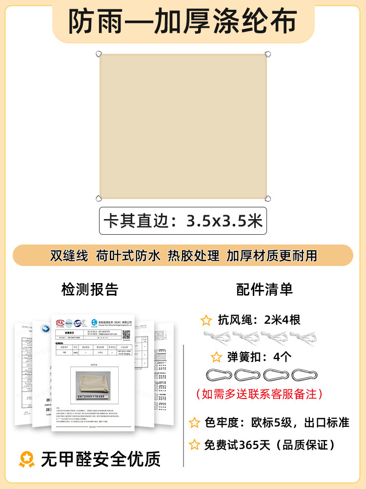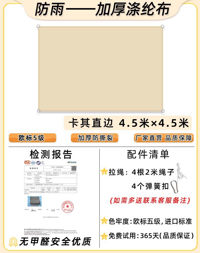 [Прямой край] Хаки 4,5x 4.5m [Недавно модернизированная водонепроницаемая технология горячего клея] 168 г улучшенной ткани европейского стандарта уровня 5