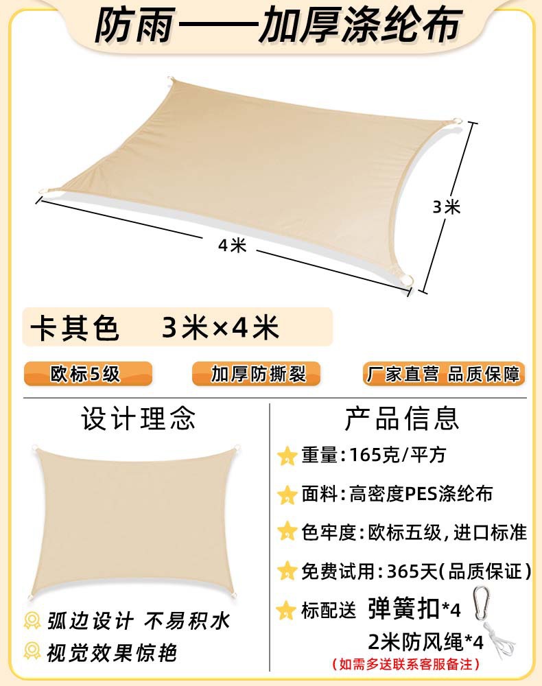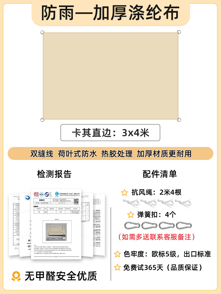 [Прямой край] Хаки 3x 4m [Недавно модернизированная водонепроницаемая технология горячего клея] 168 г улучшенной ткани европейского стандарта уровня 5