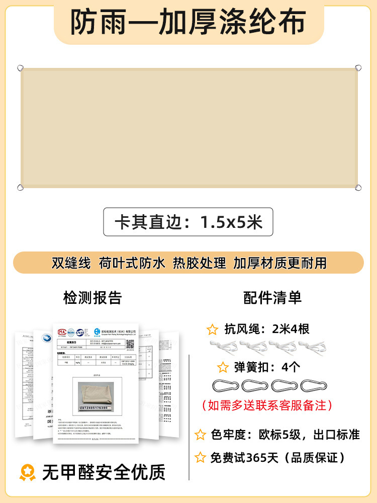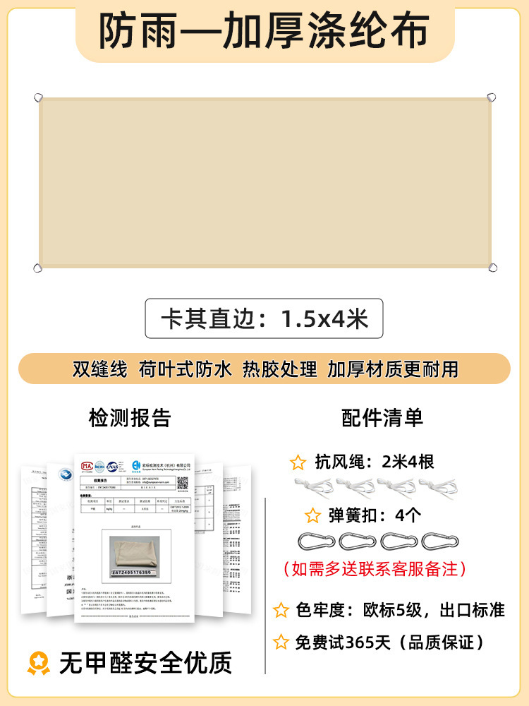 [Прямой край] Хаки 1,5x 3m [Утолщенный, водонепроницаемый и устойчивый к ультрафиолетовому излучению, 168 г] Модернизированная ткань европейского стандарта 5-го уровня.