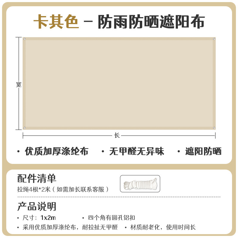 [Алюминиевая пряжка для подвешивания штор] Хаки 1x 2m [Утолщенная водонепроницаемость и устойчивость к ультрафиолетовому излучению 168 г] [Пружинная пряжка в комплект не входит] Модернизированная ткань европейского стандарта 5-го уровня