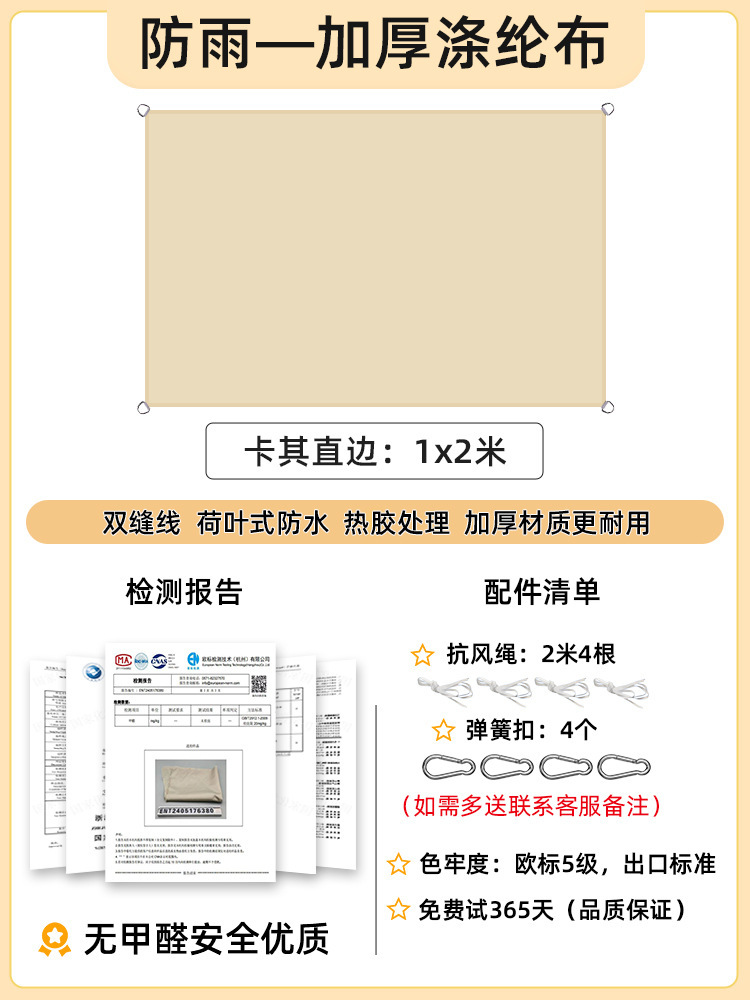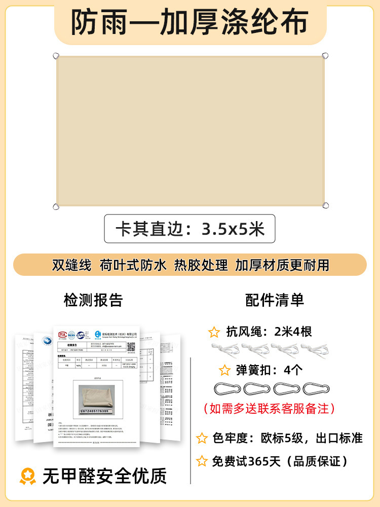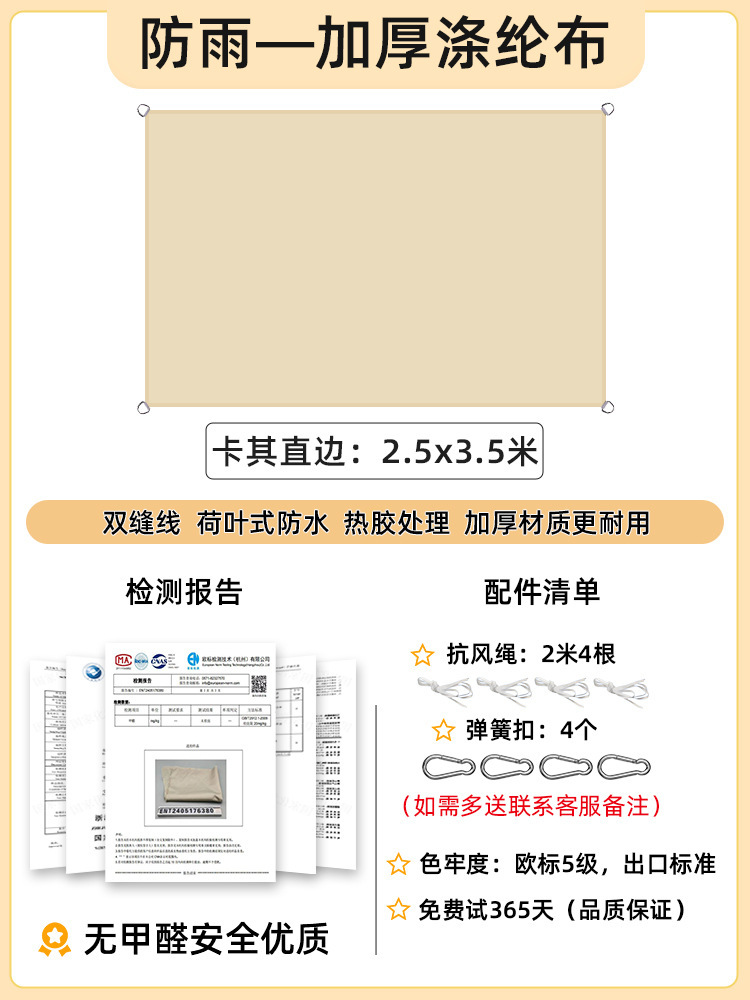 [Прямой край] Хаки 2,5x 3.5m [Недавно модернизированная водонепроницаемая технология горячего клея] 168 г улучшенной ткани европейского стандарта уровня 5