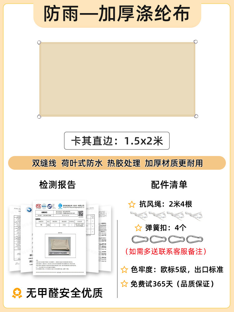 [Прямой край] Хаки 1,5x 2m [Утолщенный, водонепроницаемый и устойчивый к ультрафиолетовому излучению, 168 г] Модернизированная ткань европейского стандарта 5-го уровня.