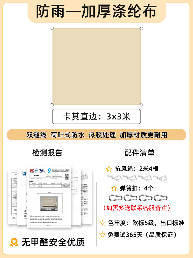 [Прямой край] Хаки 3x 3m [Недавно модернизированная водонепроницаемая технология горячего клея] 168 г улучшенной ткани европейского стандарта уровня 5