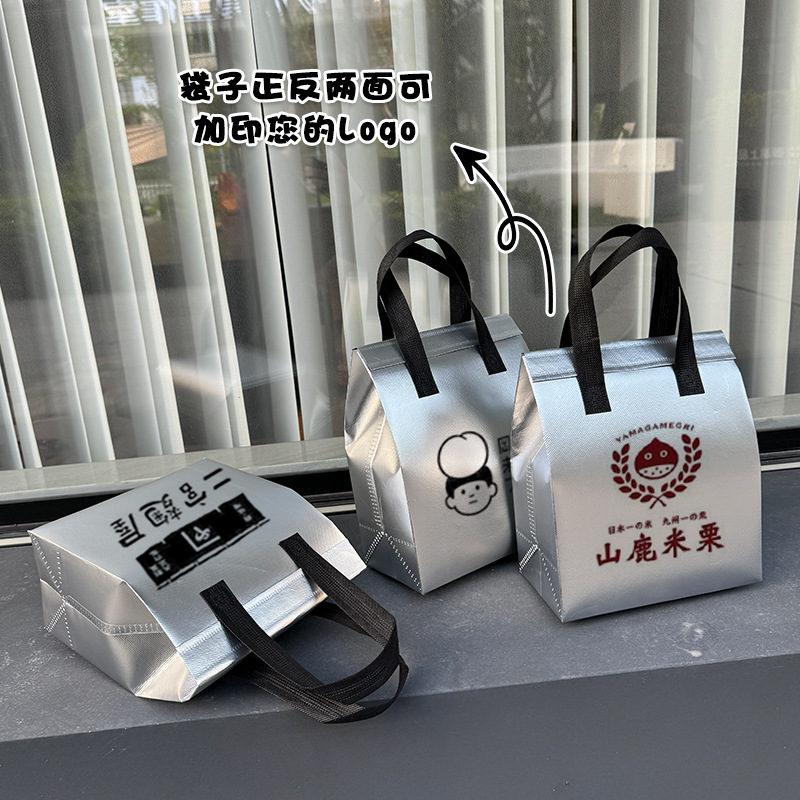Термосумка для доставки с серебряным покрытием и печатью логотипа, водонепроницаемая одноразовая упаковка из алюминиевой фольги для коммерческого использования в сфере общественного питания, для молочного чая и десертов