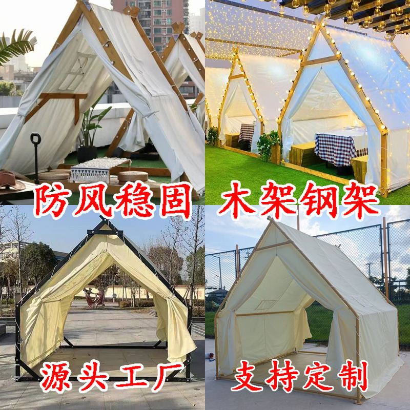 Популярная треугольная палатка для кемпинга на открытом воздухе, водонепроницаемая, солнцезащитная, стальная каркасная конструкция, внутренний бар, барбекю, горячий горшок, детский сад