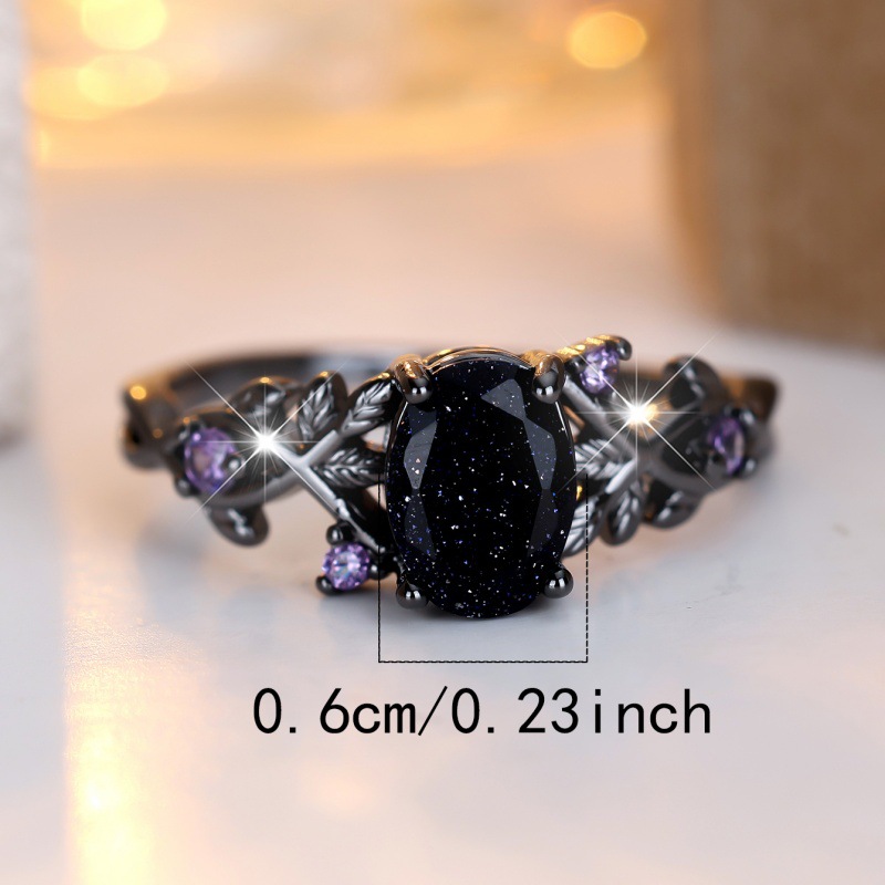 Трансграничный хит продаж, черное золото, яйцевидное, синее, с кристаллами, с песчаным краем, фиолетовое кольцо, ретро, индивидуальное, легкое, роскошное, нишевое кольцо, оптовая продажа