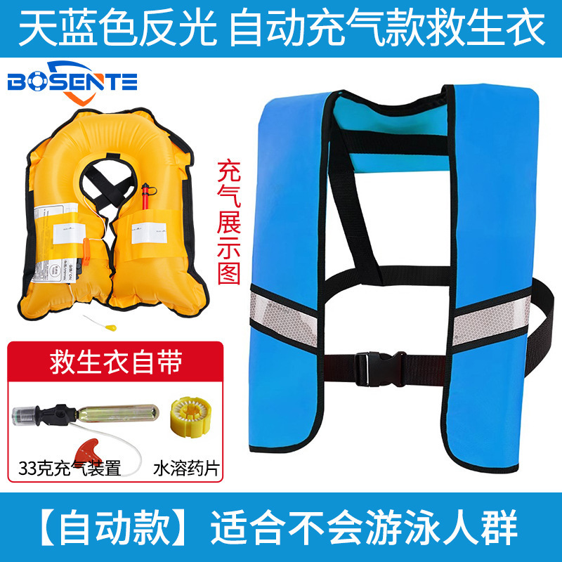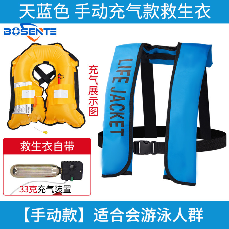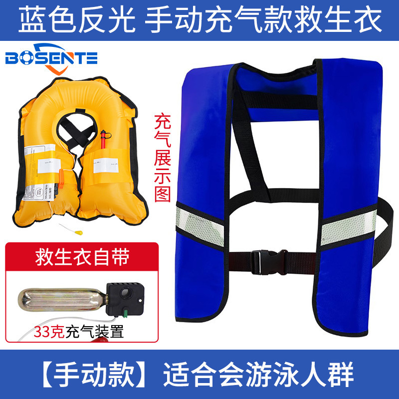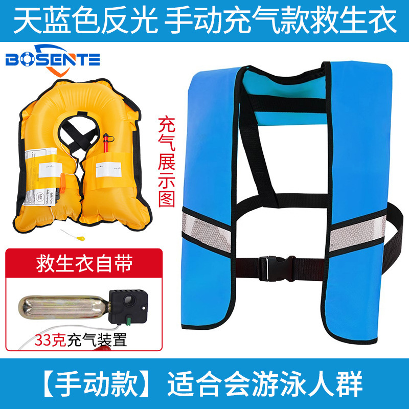 Небесно-голубой светоотражающий спасательный жилет ручного управления