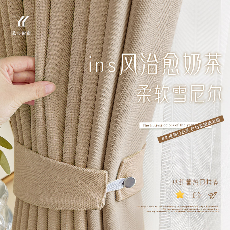 Утолщенная синель в елочку, высокая плотная занавеска, роскошная японская гостиная, солнцезащитный козырек, солнцезащитный крем, чай с молоком, цветная плотная занавеска