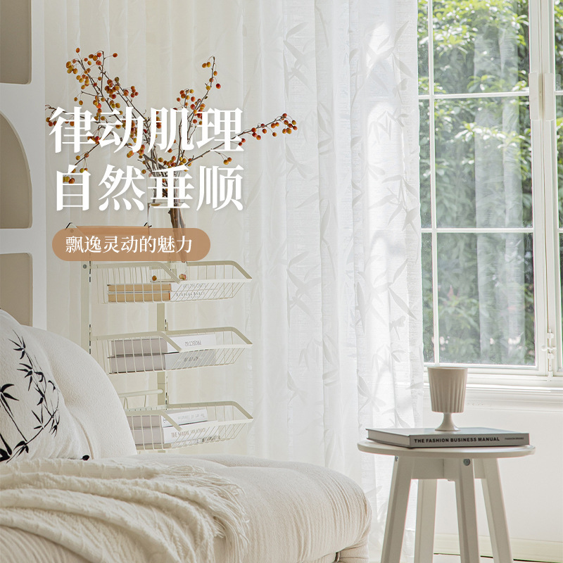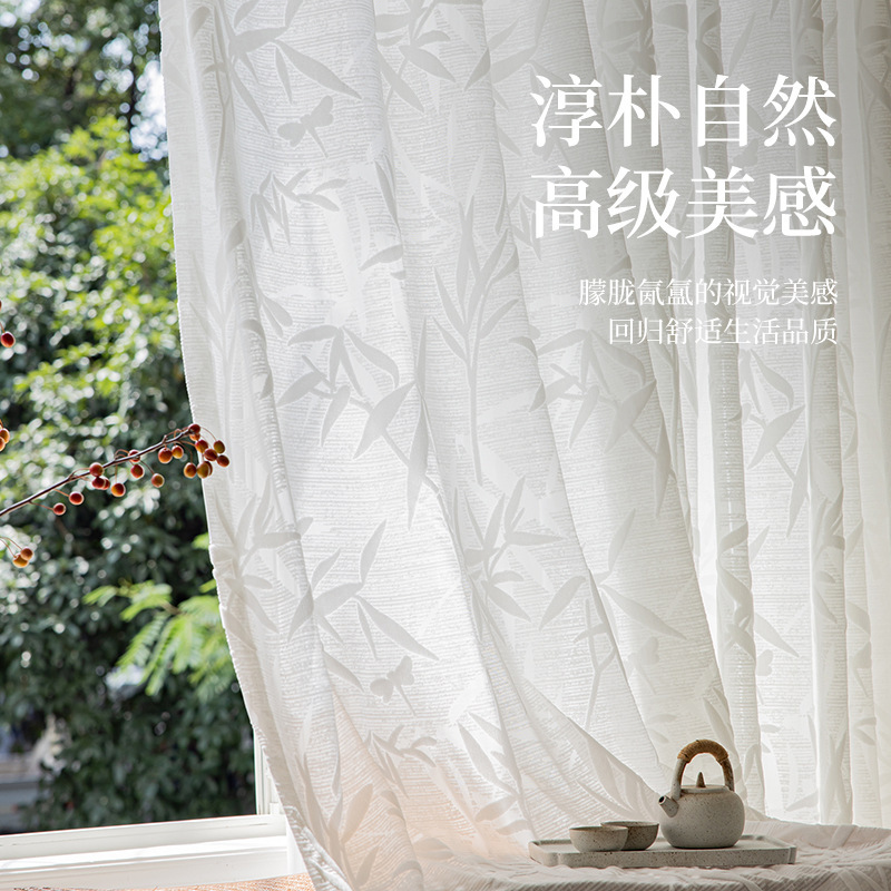Главная страница > Новые белые шторы в китайском стиле с тиснением в виде бамбуковых листьев, полупрозрачные, но не прозрачные, светопропускающие, в японском стиле для гостиной и спальни.