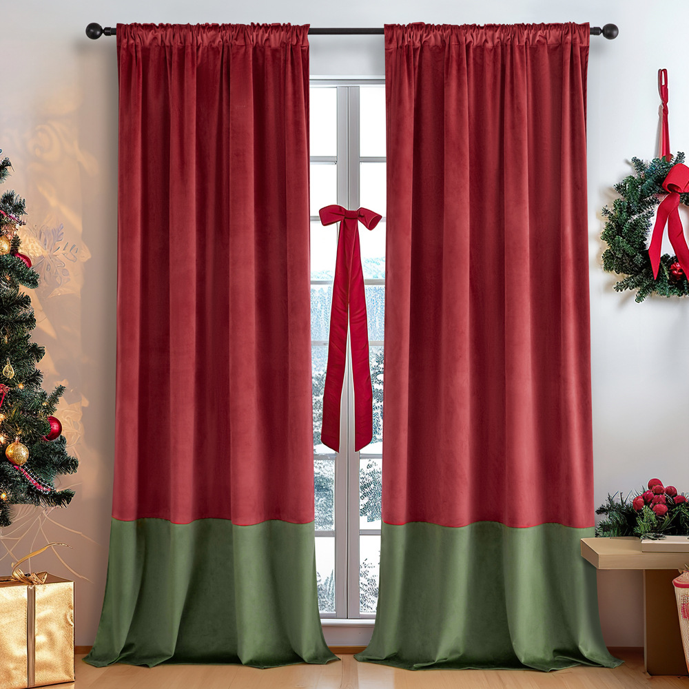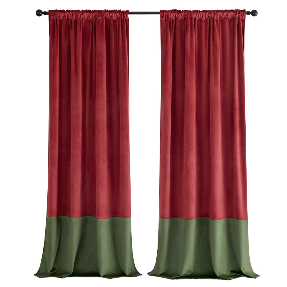 Новые рождественские бархатные шторы для гостиной спальни затемненные шторы американский ретро готовые шторы красно-зеленые шторы