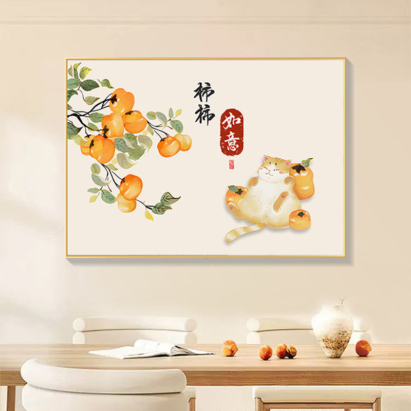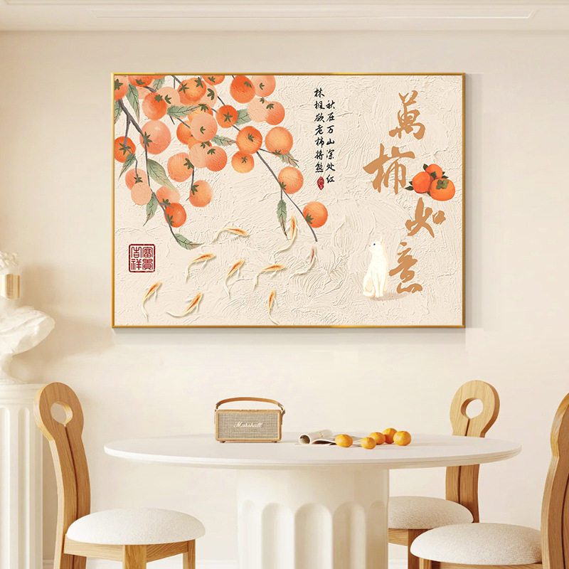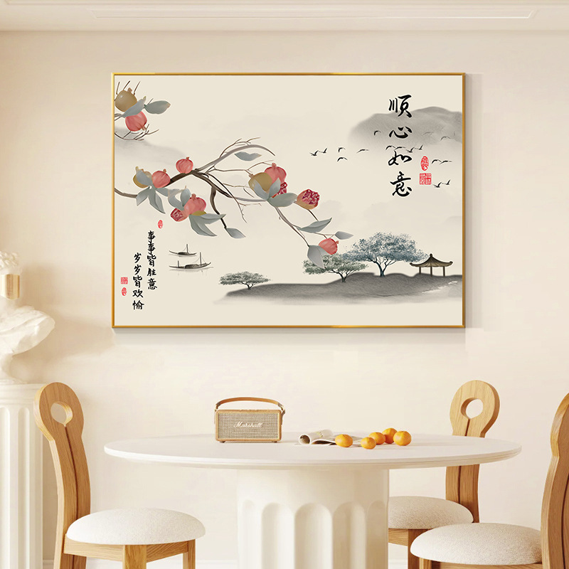Главная страница > Новый китайский ресторан декоративная роспись новая хурма Руйи столовая гостиная фон стены висит роспись с хорошим фреском