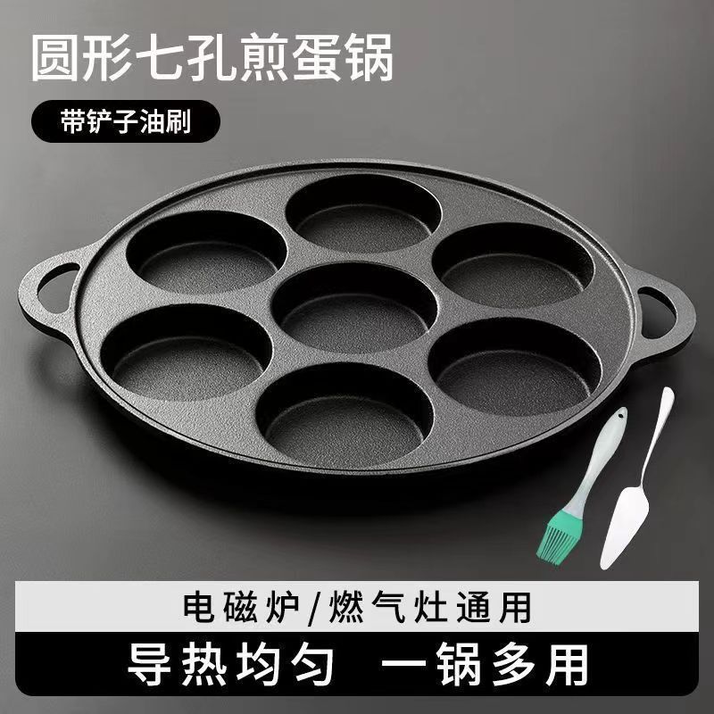 Двухушистая сковорода для омлета на семь отверстий, лопаточка и масляная кисточка.