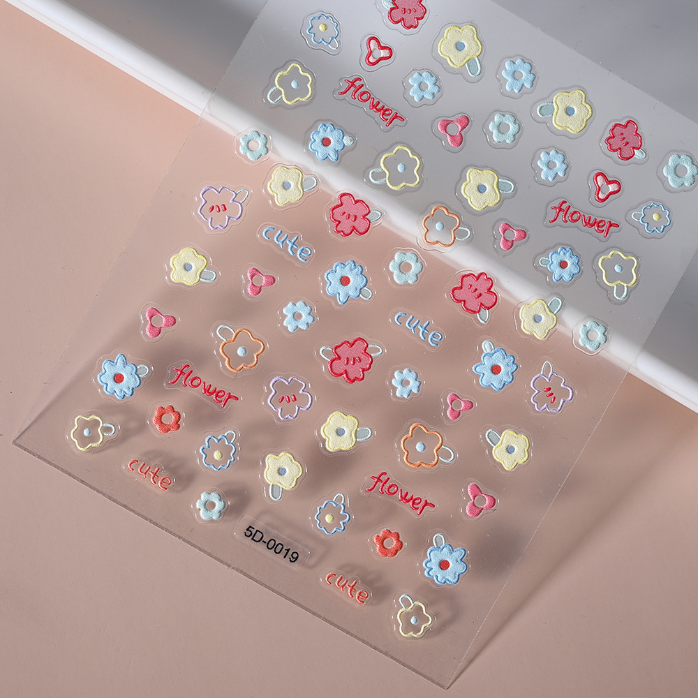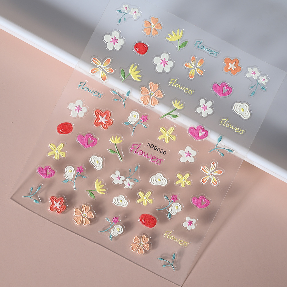 Xiaohongshu популярные корейские стильные маленькие цветочные тисненые стерео наклейки для дизайна ногтей мультфильм «сделай сам» водонепроницаемые тисненные наклейки наклейки на ручку