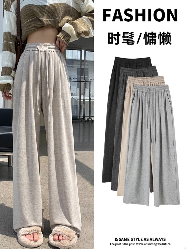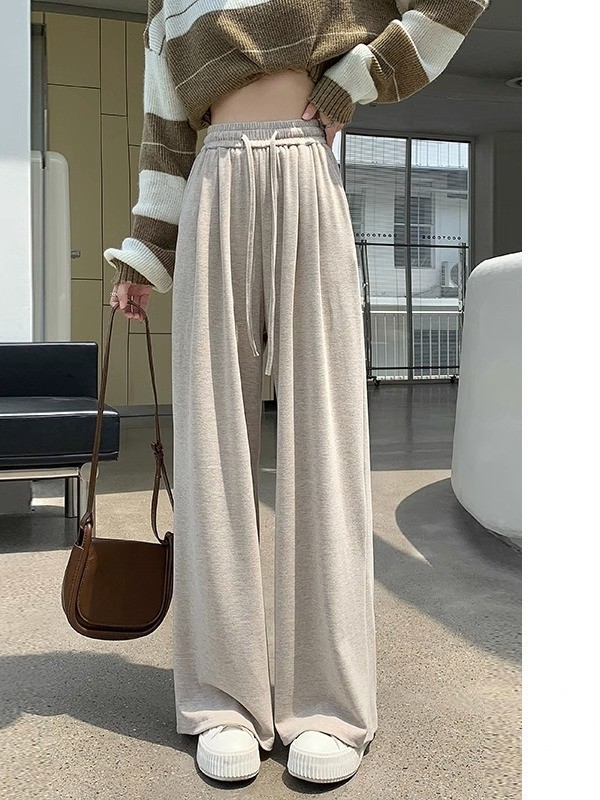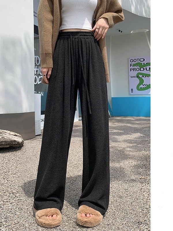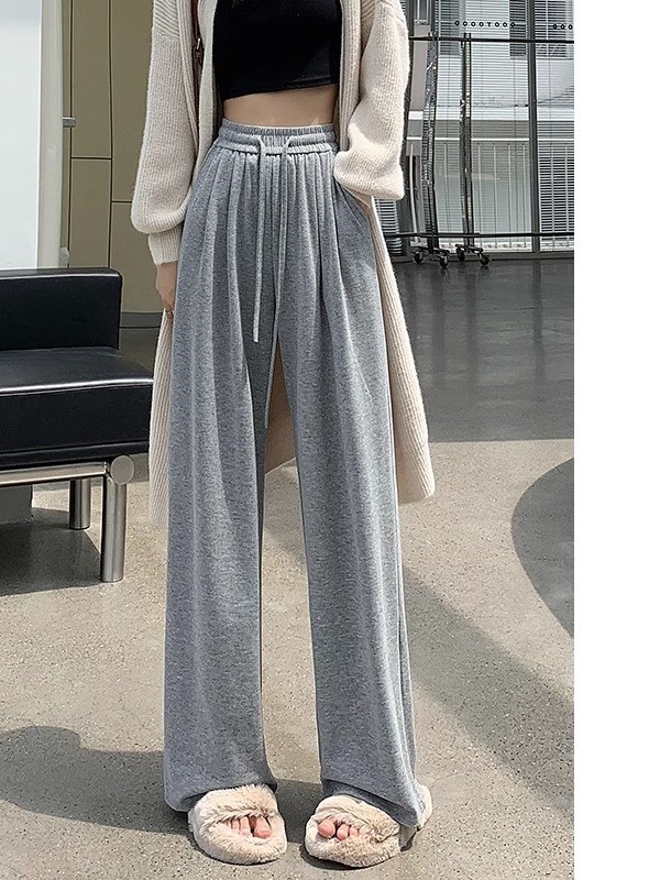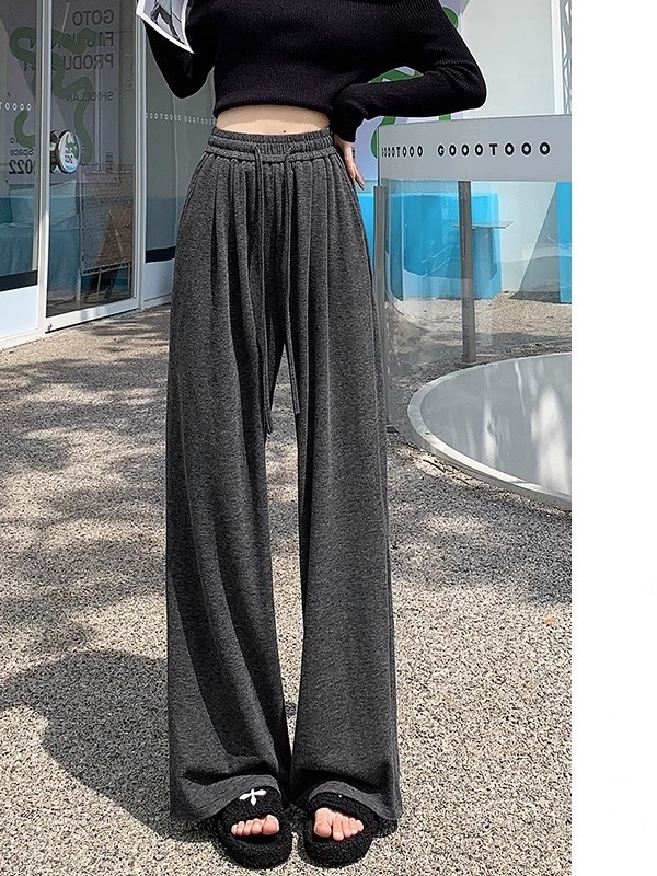 Главная страница > Темно-Серые трикотажные брюки из клейкого риса для женщин Весна и осень Новые широкие брюки с высокой талией и драпировкой прямые свободные повседневные брюки для мытья полов