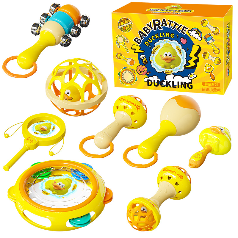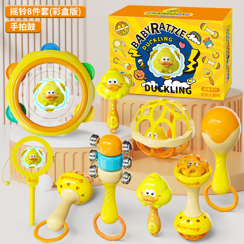 [Цветная коробка] Погремушка Bapa Little Yellow Duck, набор погремушек из 8 предметов + ручной барабан