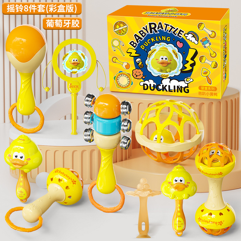 [Цветная коробка] Погремушка Bapa Little Yellow Duck, набор погремушек из 8 предметов
