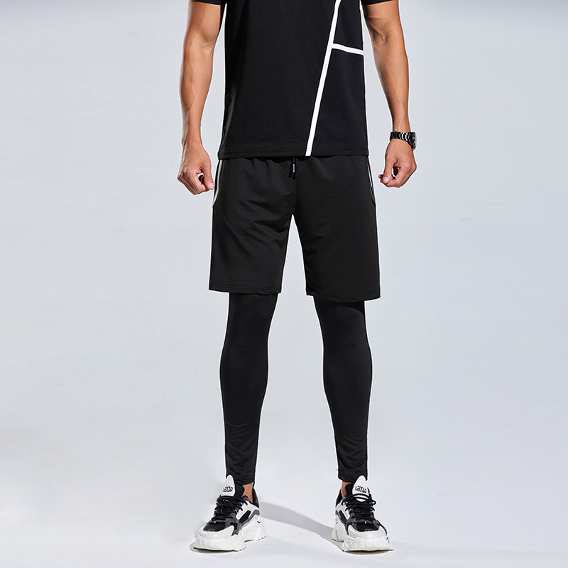 Главная страница > Спортивные штаны для фитнеса из двух частей из искусственной кожи, мужские быстросохнущие штаны, осенне-зимние штаны средней длины, обтягивающие эластичные тренировочные Мужские штаны для бега