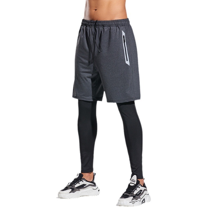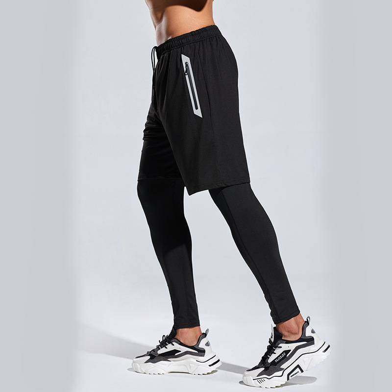 Спортивные штаны для фитнеса из двух частей из искусственной кожи, мужские быстросохнущие штаны, осенне-зимние штаны средней длины, обтягивающие эластичные тренировочные Мужские штаны для бега