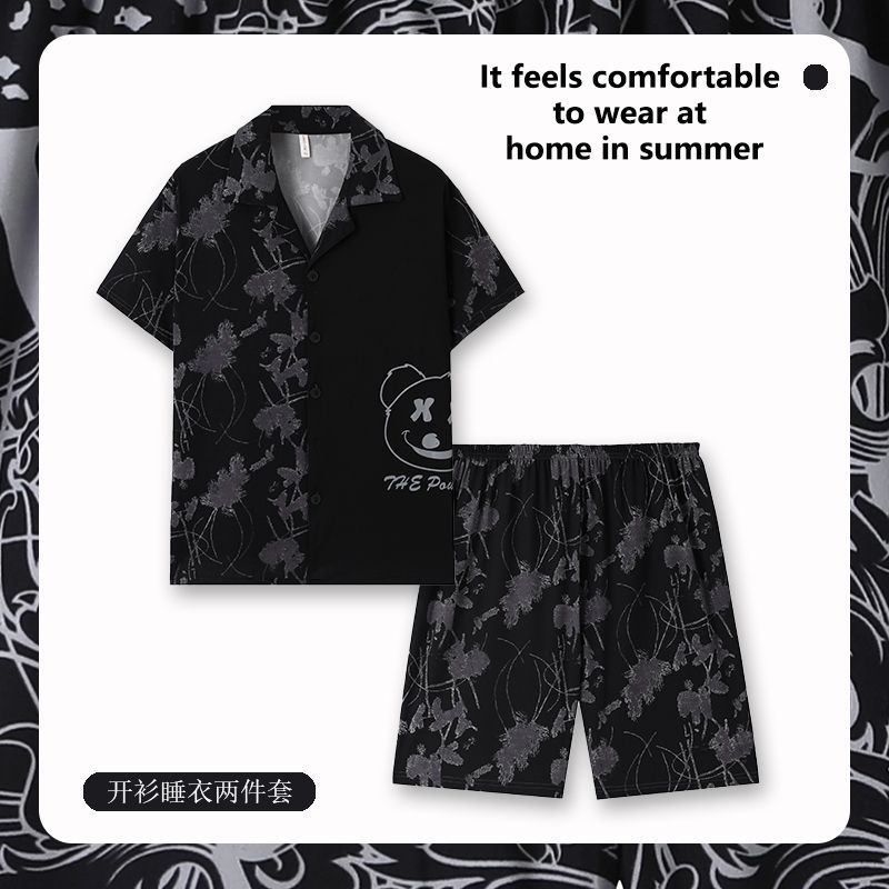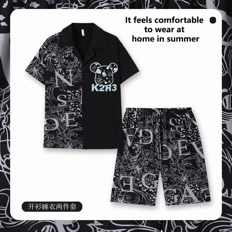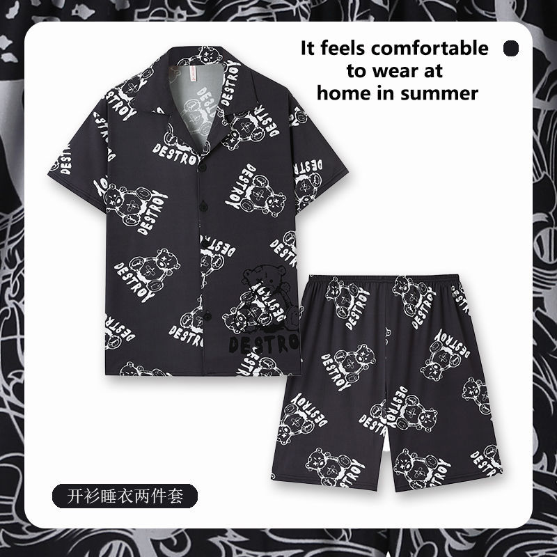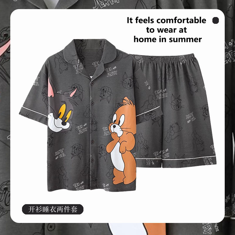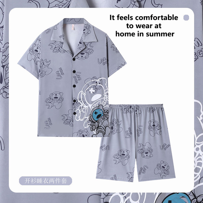 Главная страница > Мужская Пижама, летний тонкий кардиган, шорты с короткими рукавами, свободная верхняя одежда с мультяшным принтом, домашняя одежда, костюм из двух частей