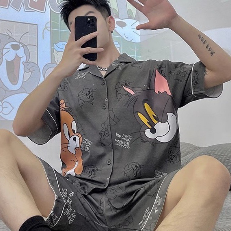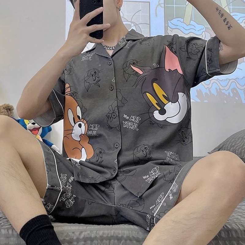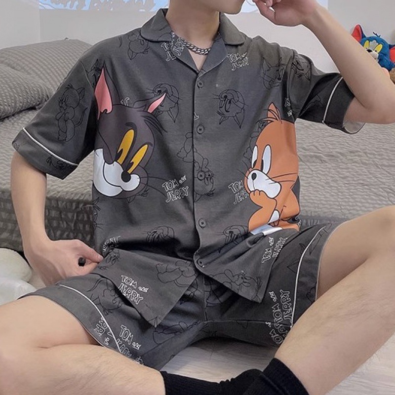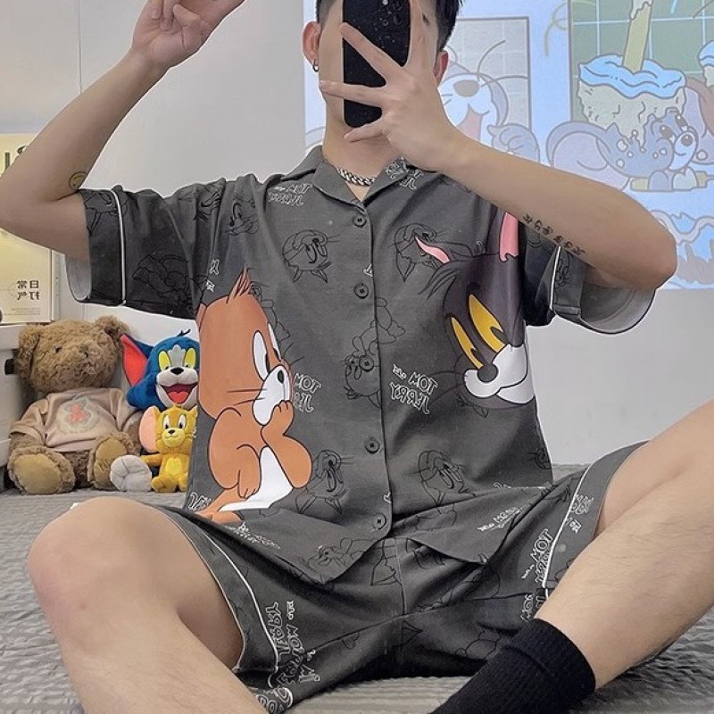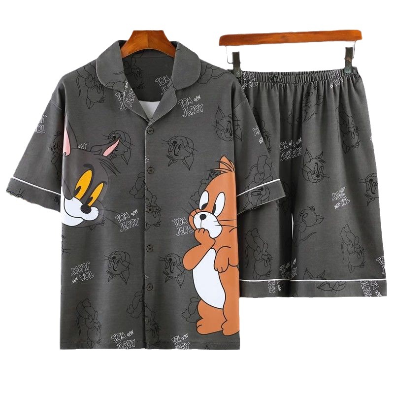 Главная страница > Мужская Пижама, летний тонкий кардиган, шорты с короткими рукавами, свободная верхняя одежда с мультяшным принтом, домашняя одежда, костюм из двух частей