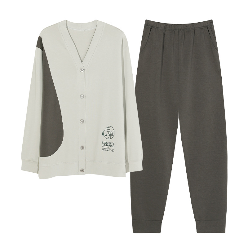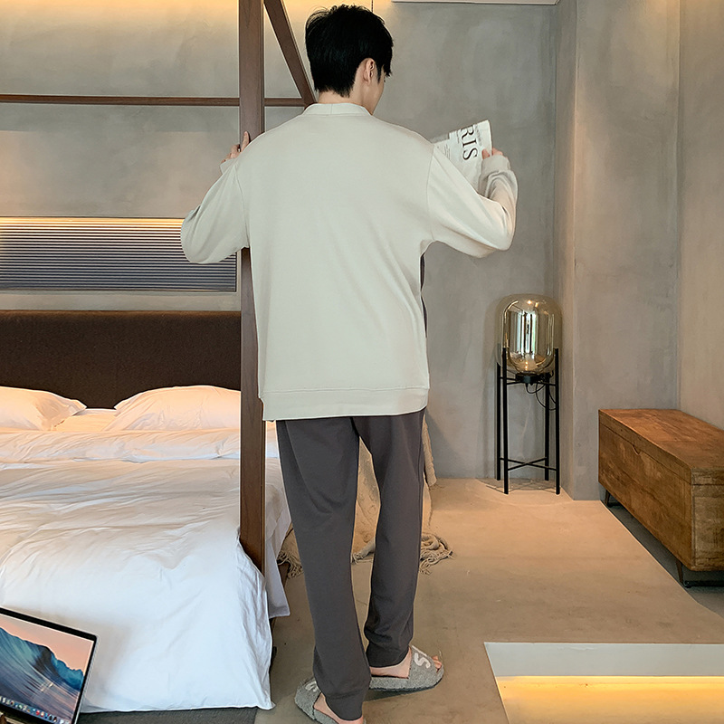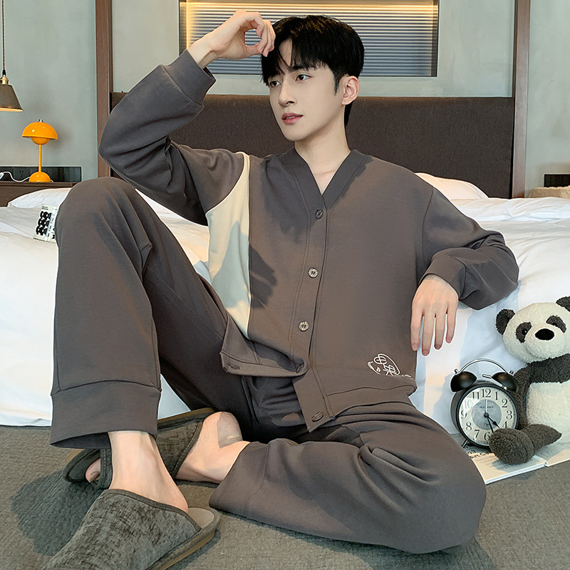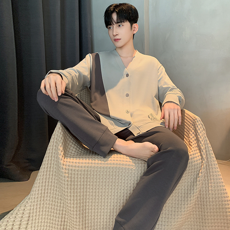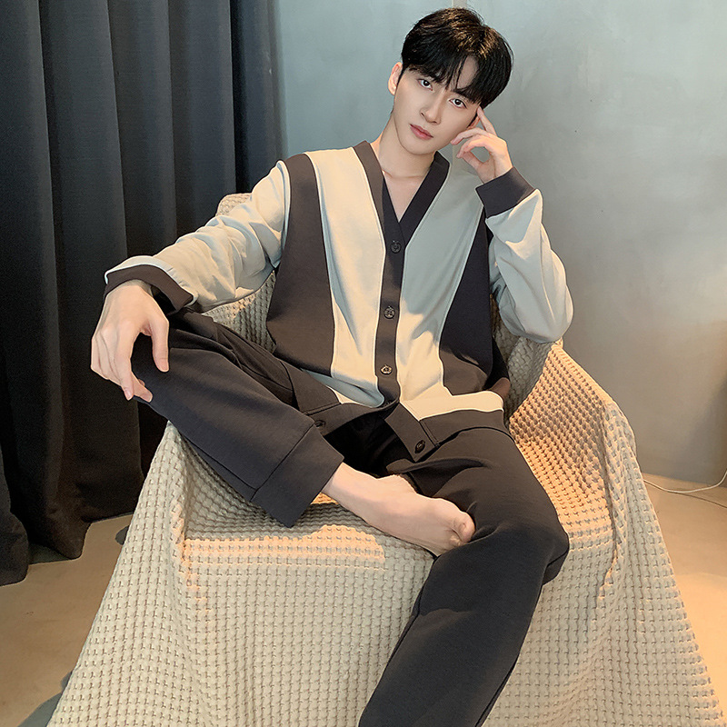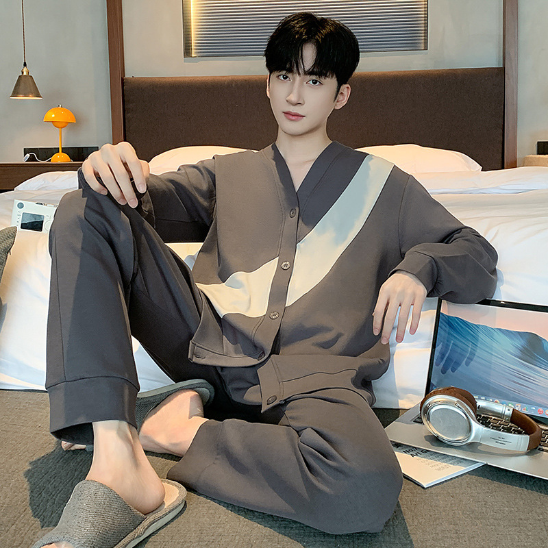 Главная страница > Пижама мужская весна и осень хлопок длинные рукава брюки новые мальчики V-образный кардиган простой повседневный набор домашней одежды