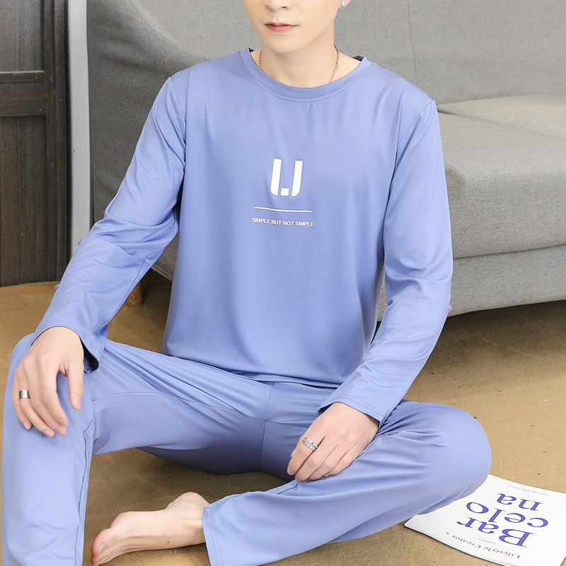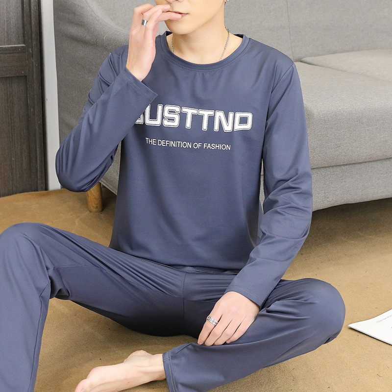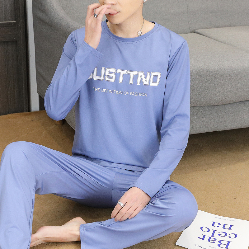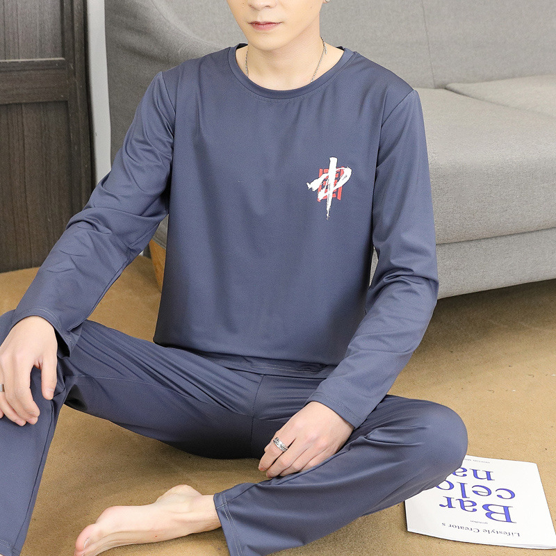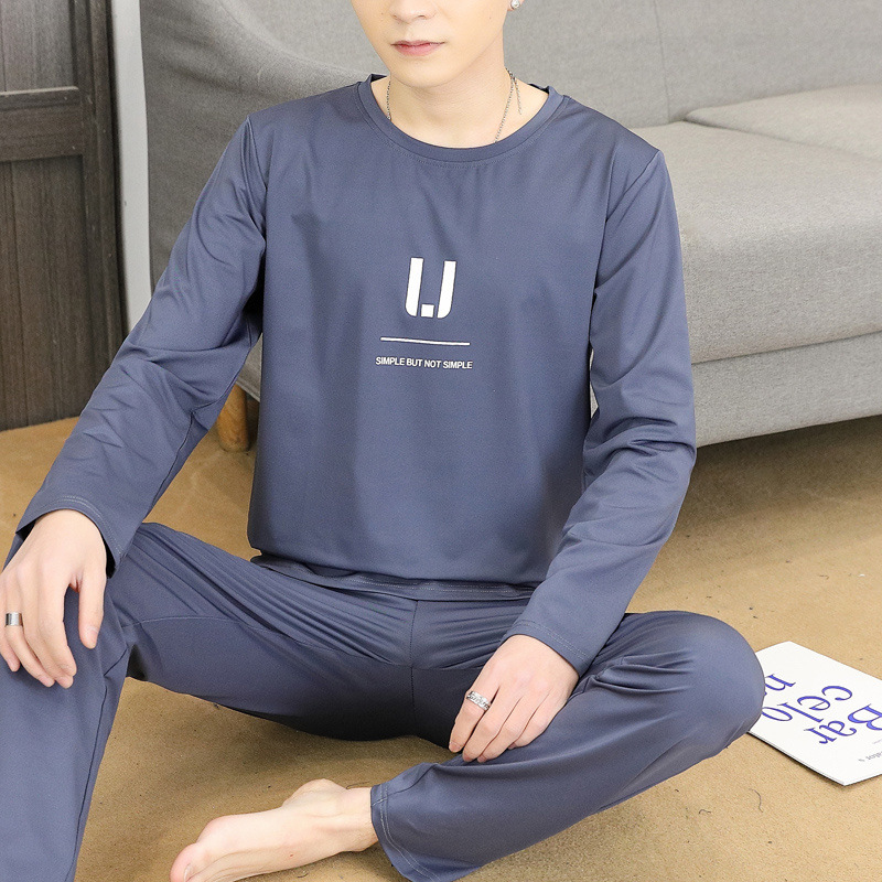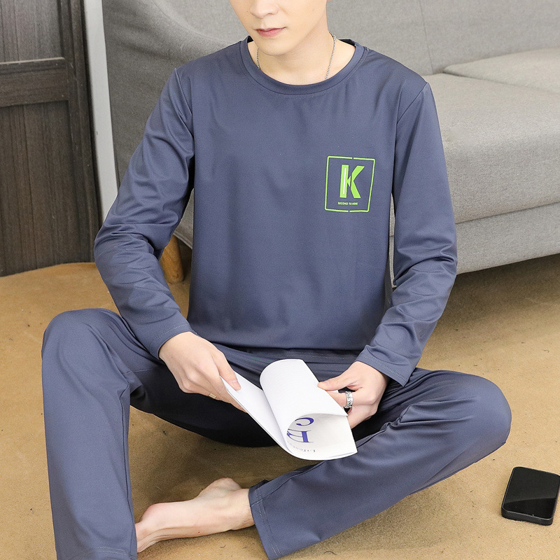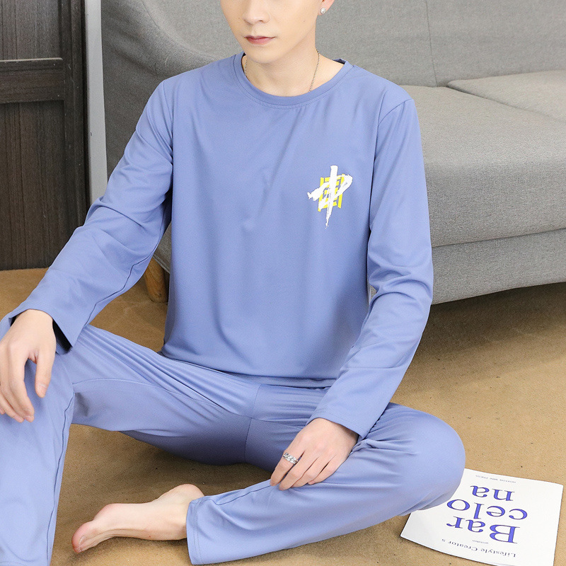 Главная страница > Пижама для мужчин с длинными рукавами летом свободный отдых весной и осенью можно носить тонкую домашнюю одежду летом мужской костюм из двух частей