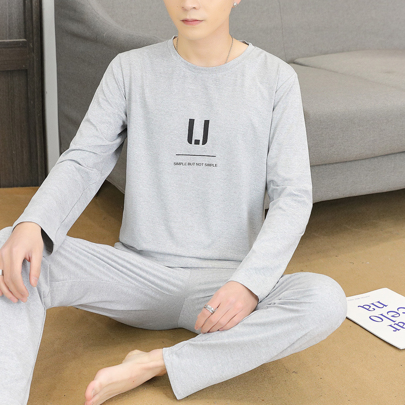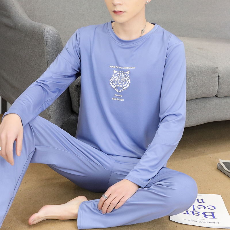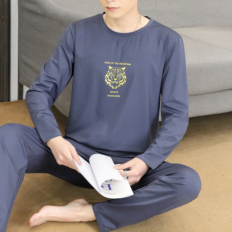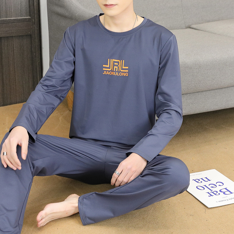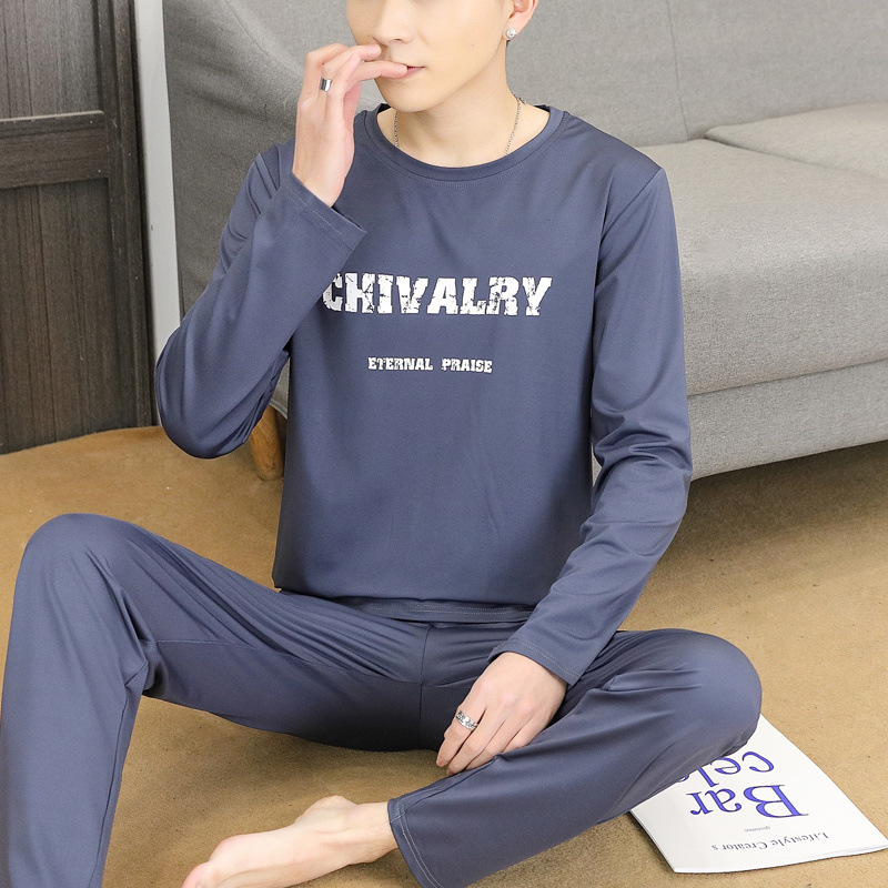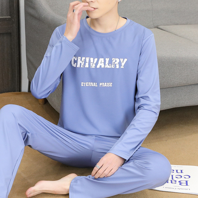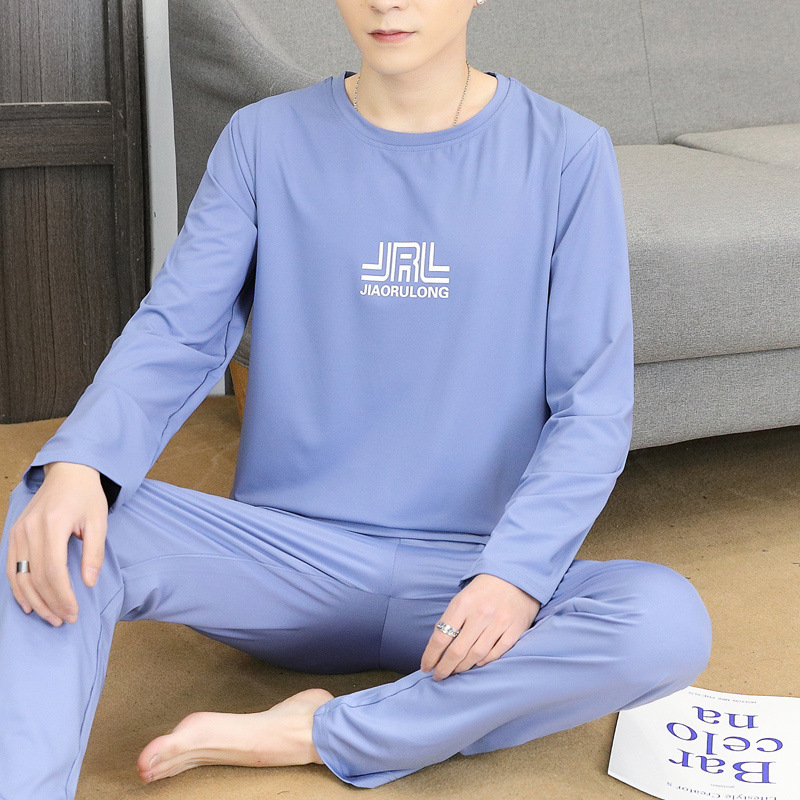 Главная страница > Пижама для мужчин с длинными рукавами летом свободный отдых весной и осенью можно носить тонкую домашнюю одежду летом мужской костюм из двух частей