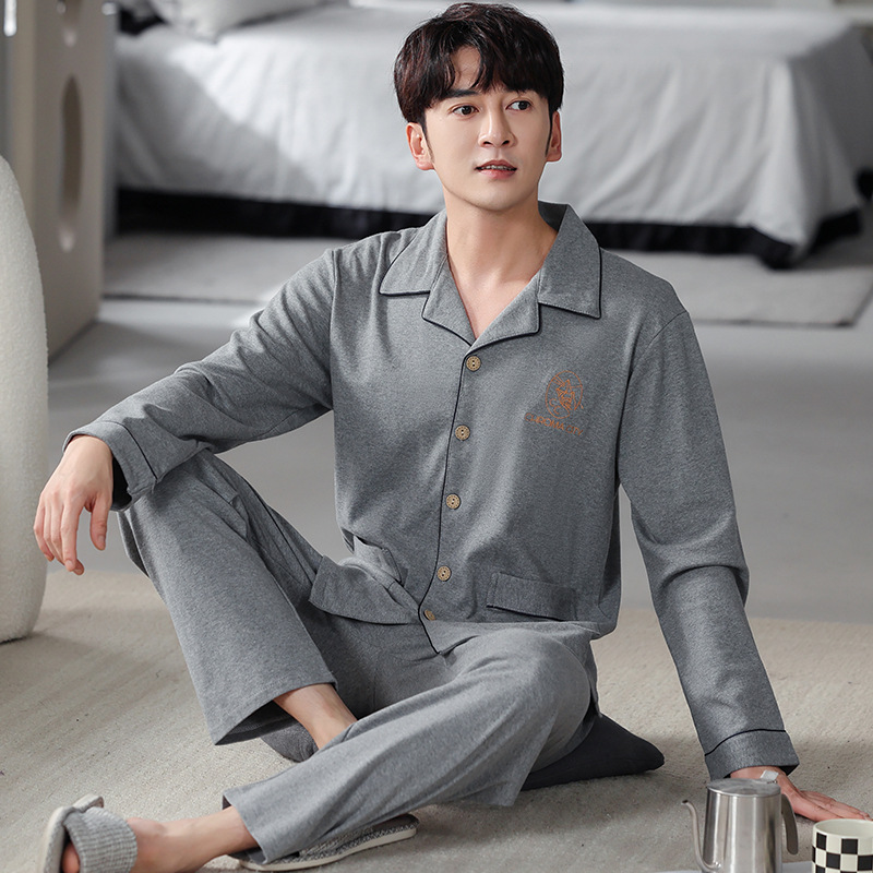 Главная страница > Новогодний комплект мужской домашней одежды: осенне-зимний хлопковый свободный кардиган с длинными рукавами и отложным воротником, элитный комплект для дома