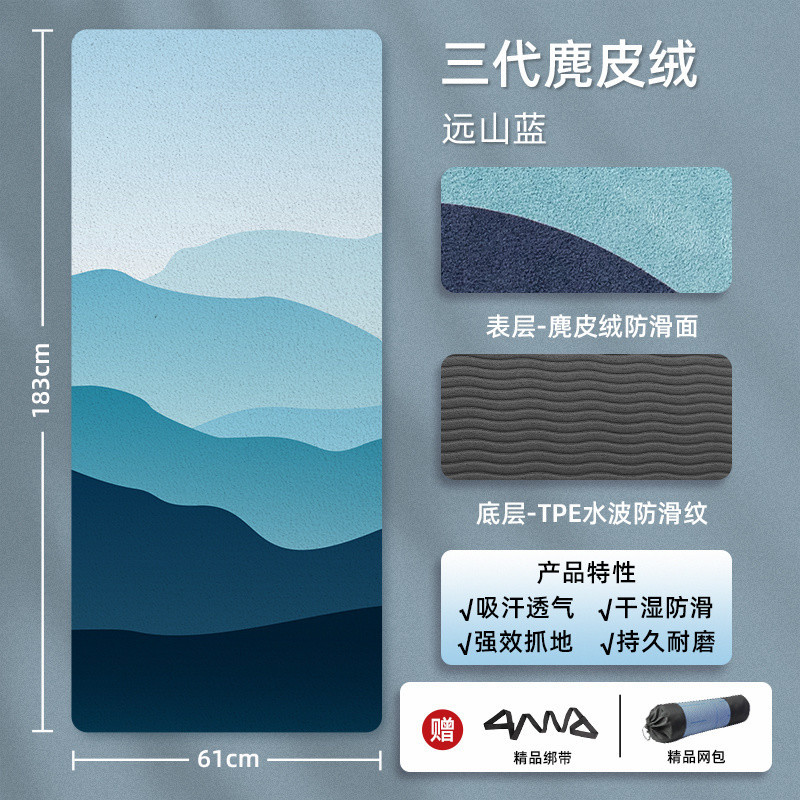 Замшевый нескользящий коврик для йоги, нескользящий ручка из ТПЭ, расширенный и утолщенный, амортизирующий, бесшумный спортивный коврик для фитнеса, впитывающий пот.