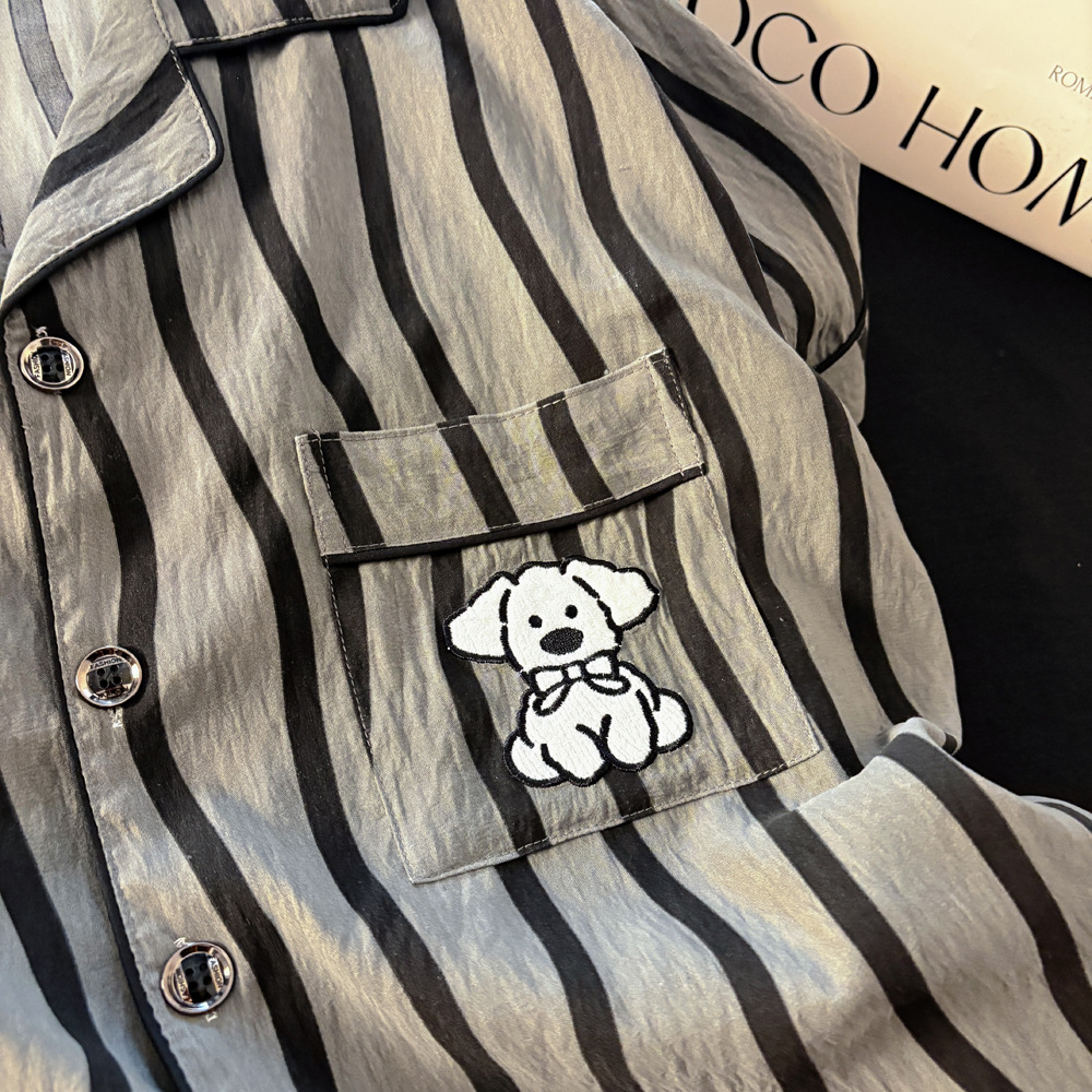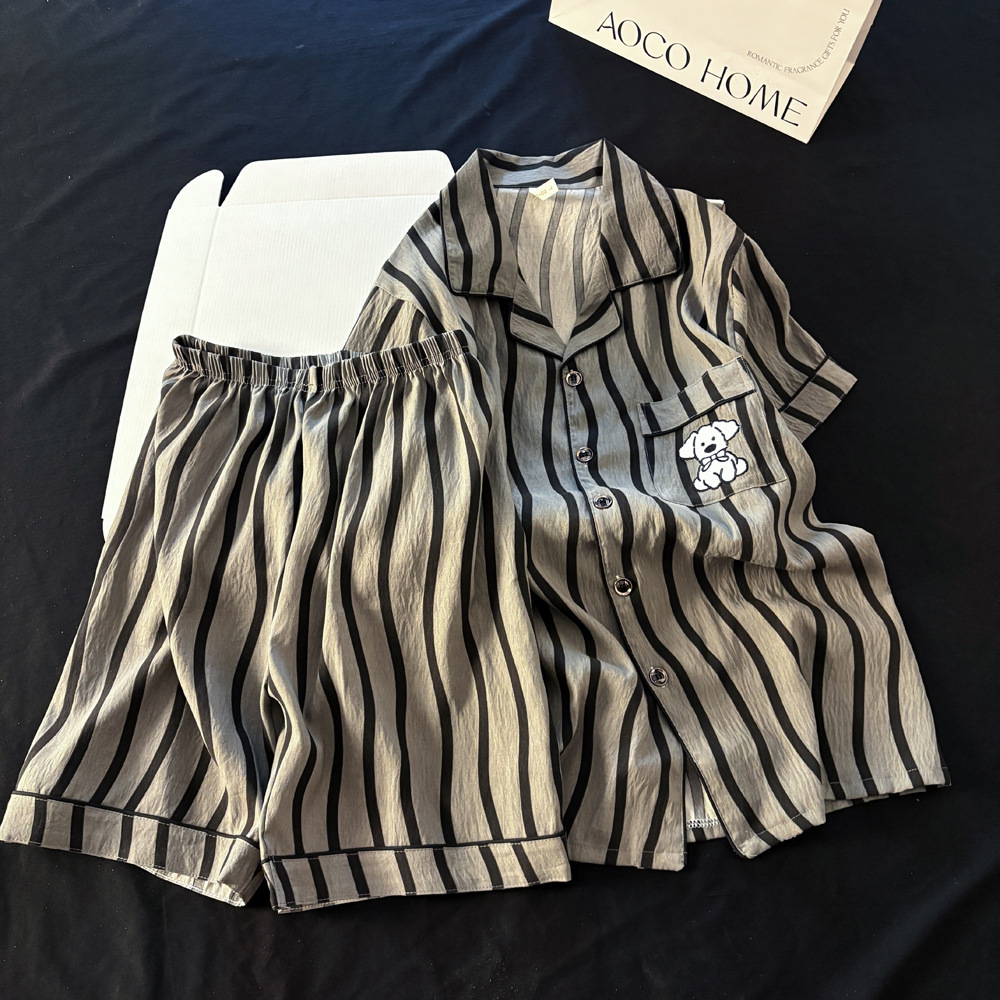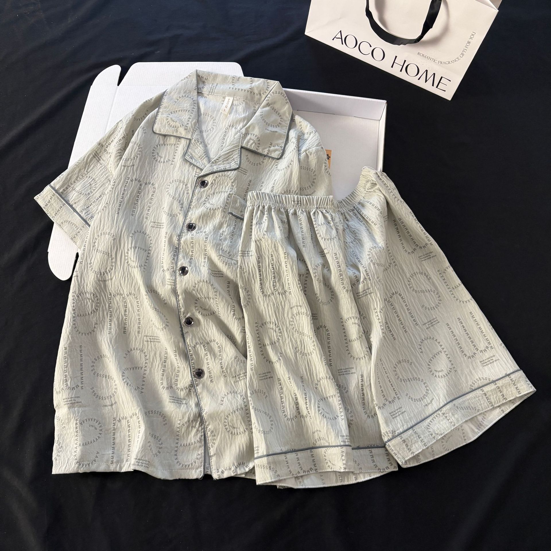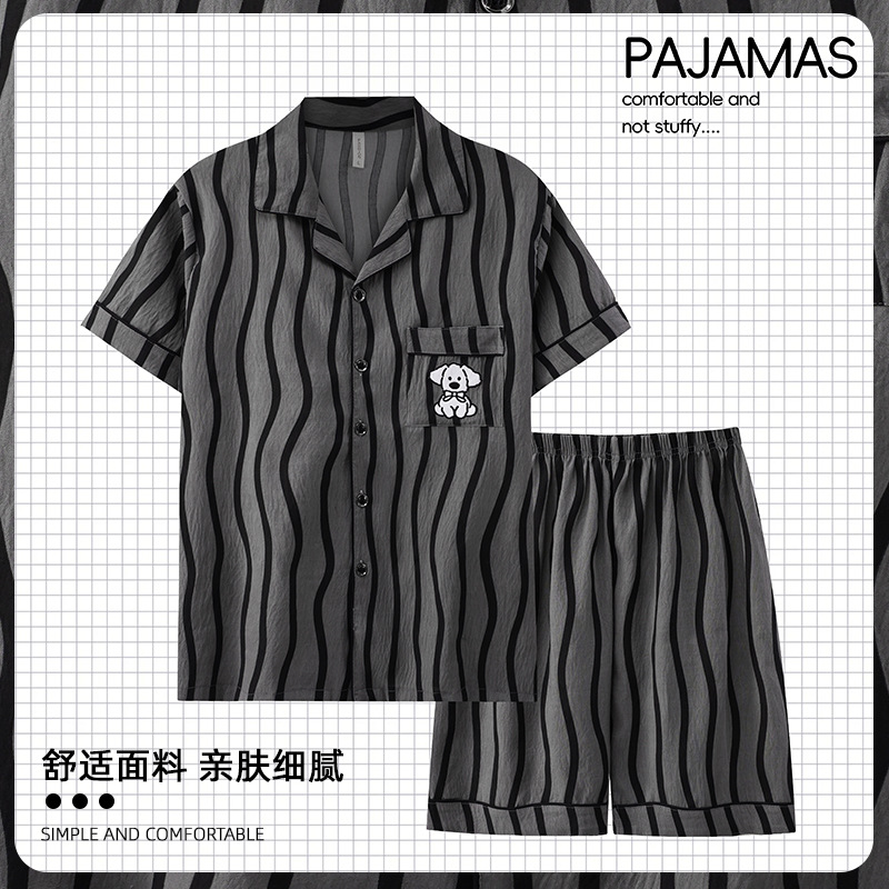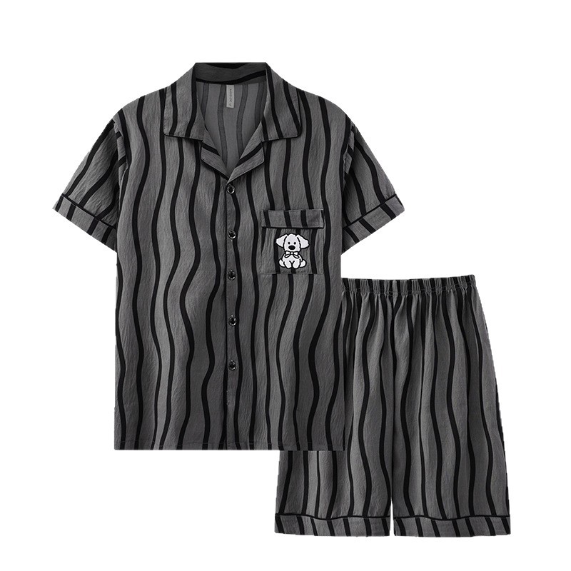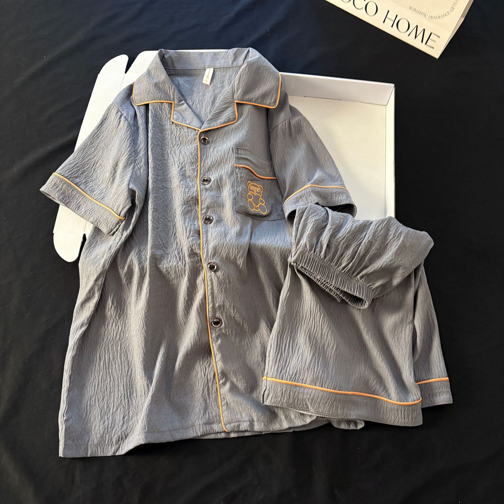 Главная страница > 2025 новые летние пижамы для мужчин, хлопковые пижамы с двойными короткими лацканами и вышивкой, домашний комплект для мужчин