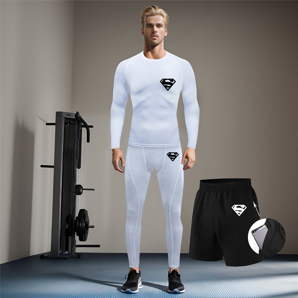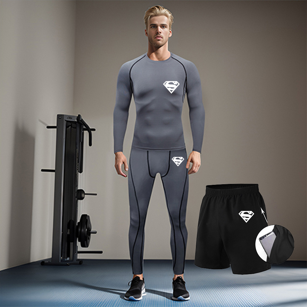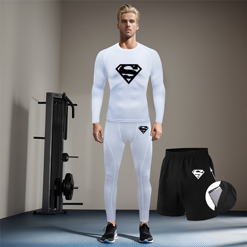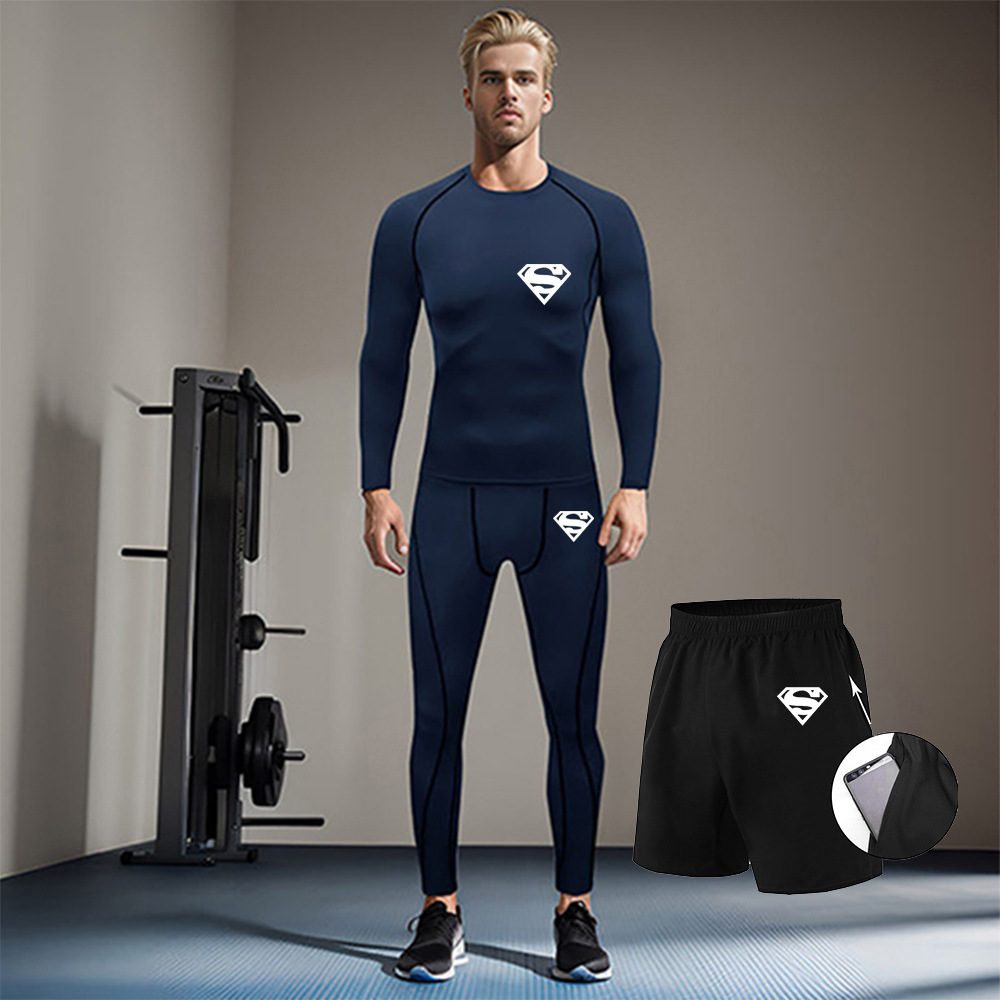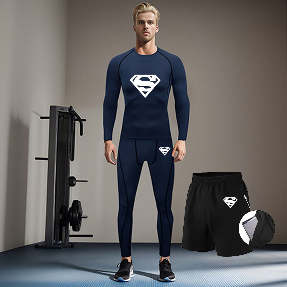 Главная страница > Мужской костюм-тройка, компрессионные быстросохнущие колготки с короткими рукавами, спортивный костюм для бега, баскетбольный тренировочный костюм для спортзала
