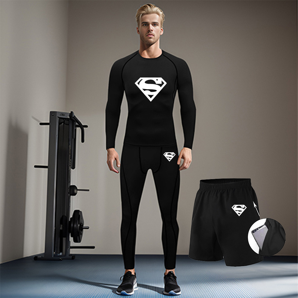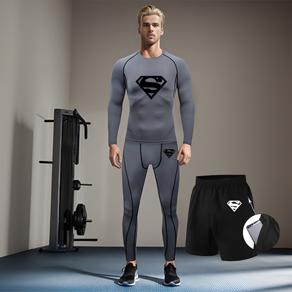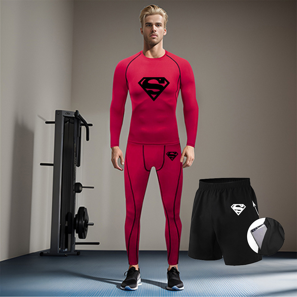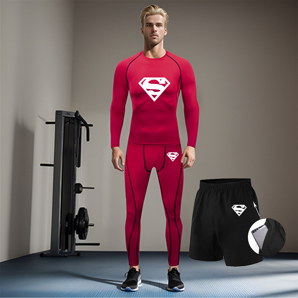 Главная страница > Мужской костюм-тройка, компрессионные быстросохнущие колготки с короткими рукавами, спортивный костюм для бега, баскетбольный тренировочный костюм для спортзала