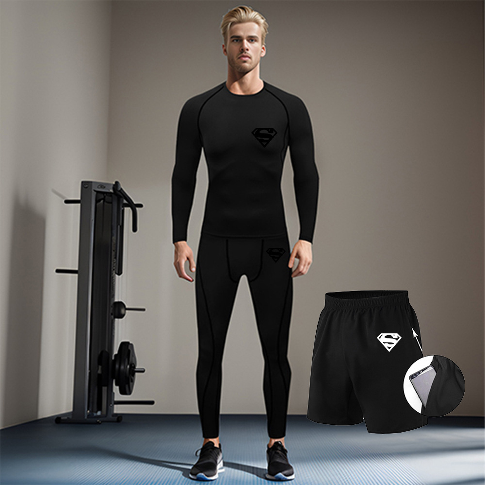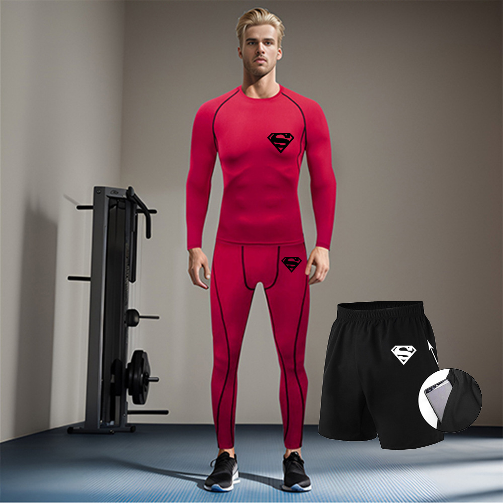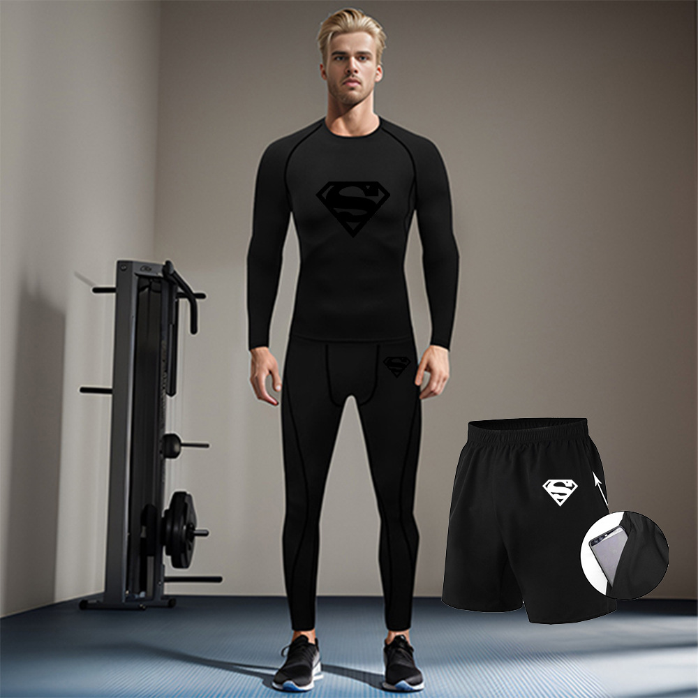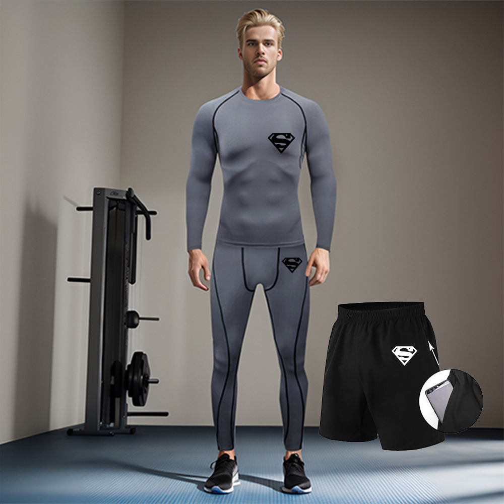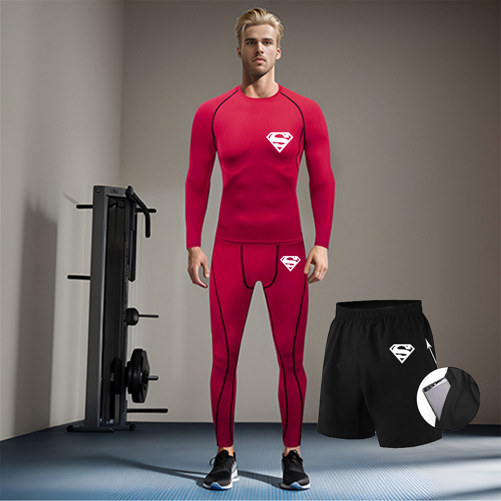 Главная страница > Мужской костюм-тройка, компрессионные быстросохнущие колготки с короткими рукавами, спортивный костюм для бега, баскетбольный тренировочный костюм для спортзала
