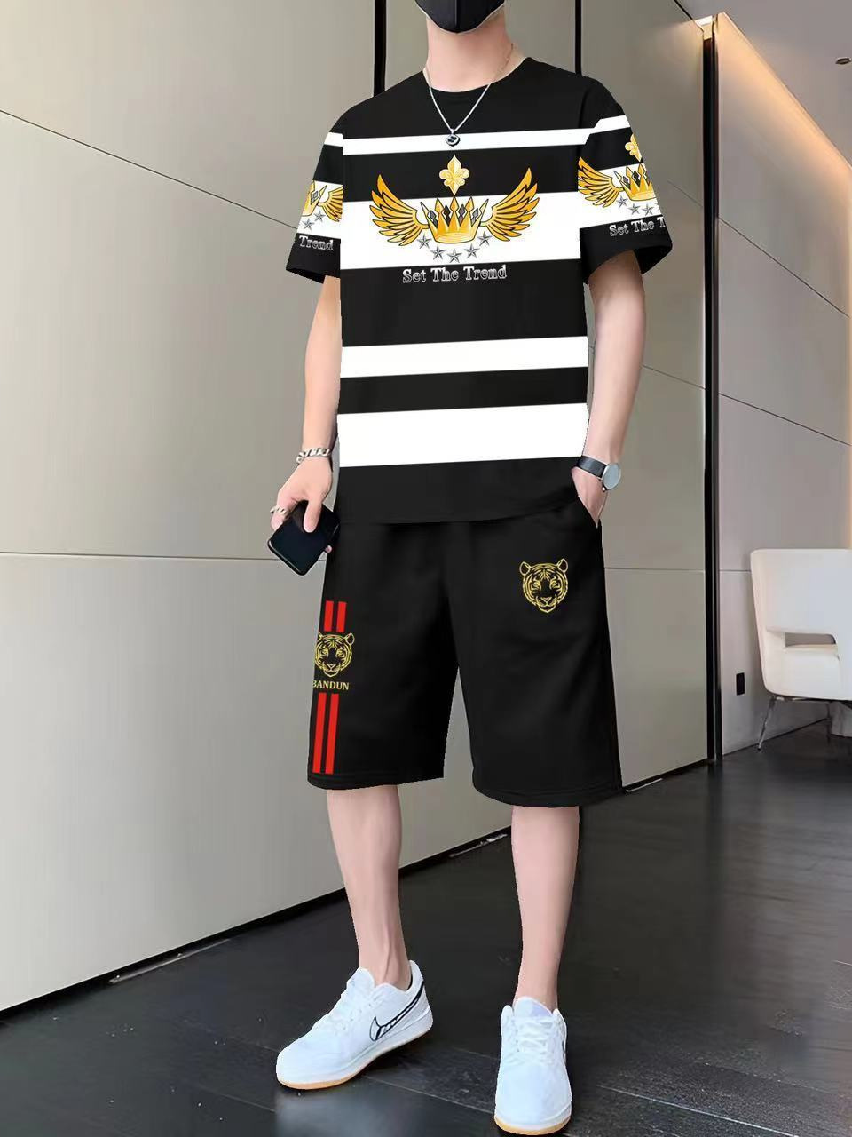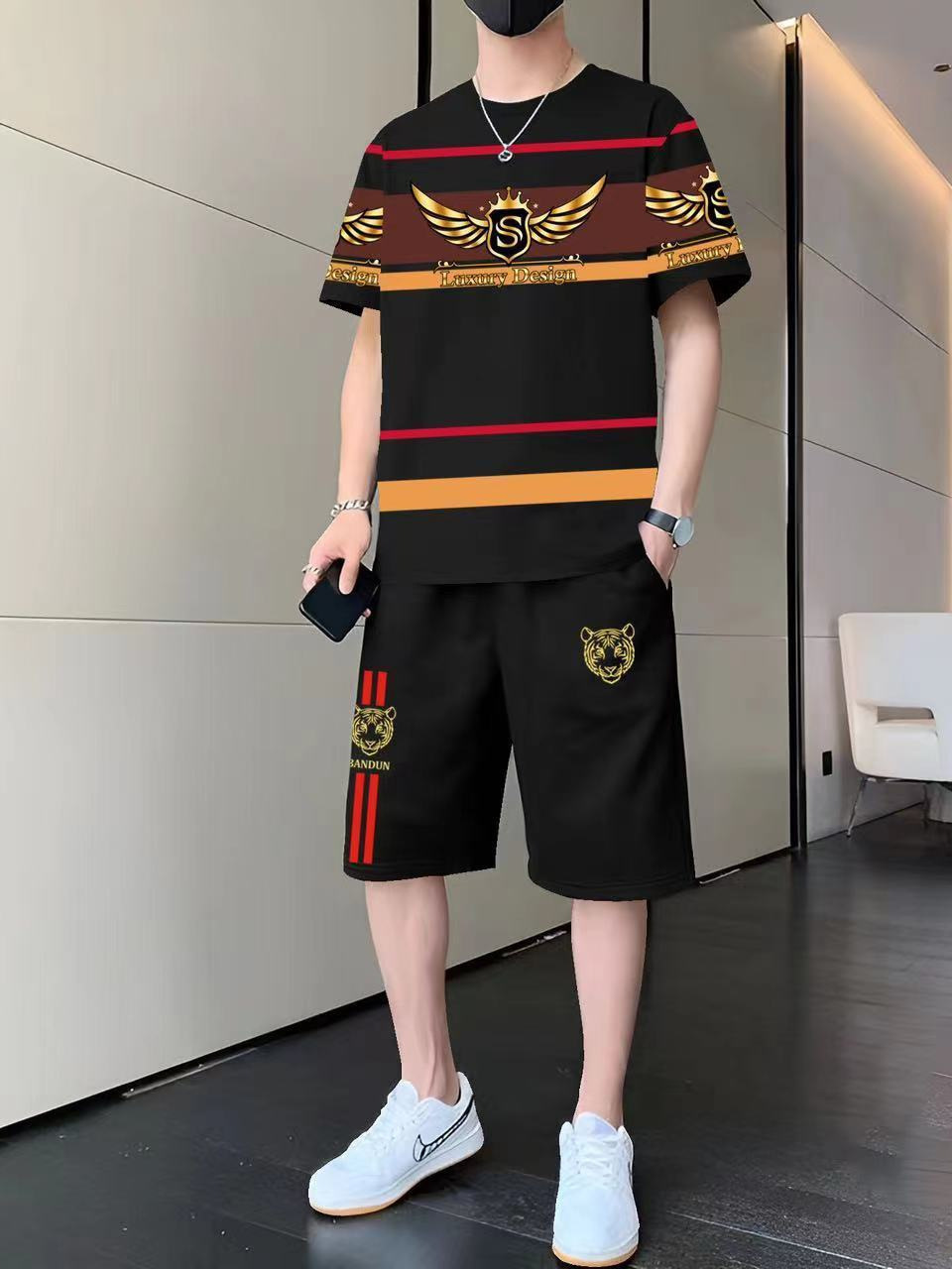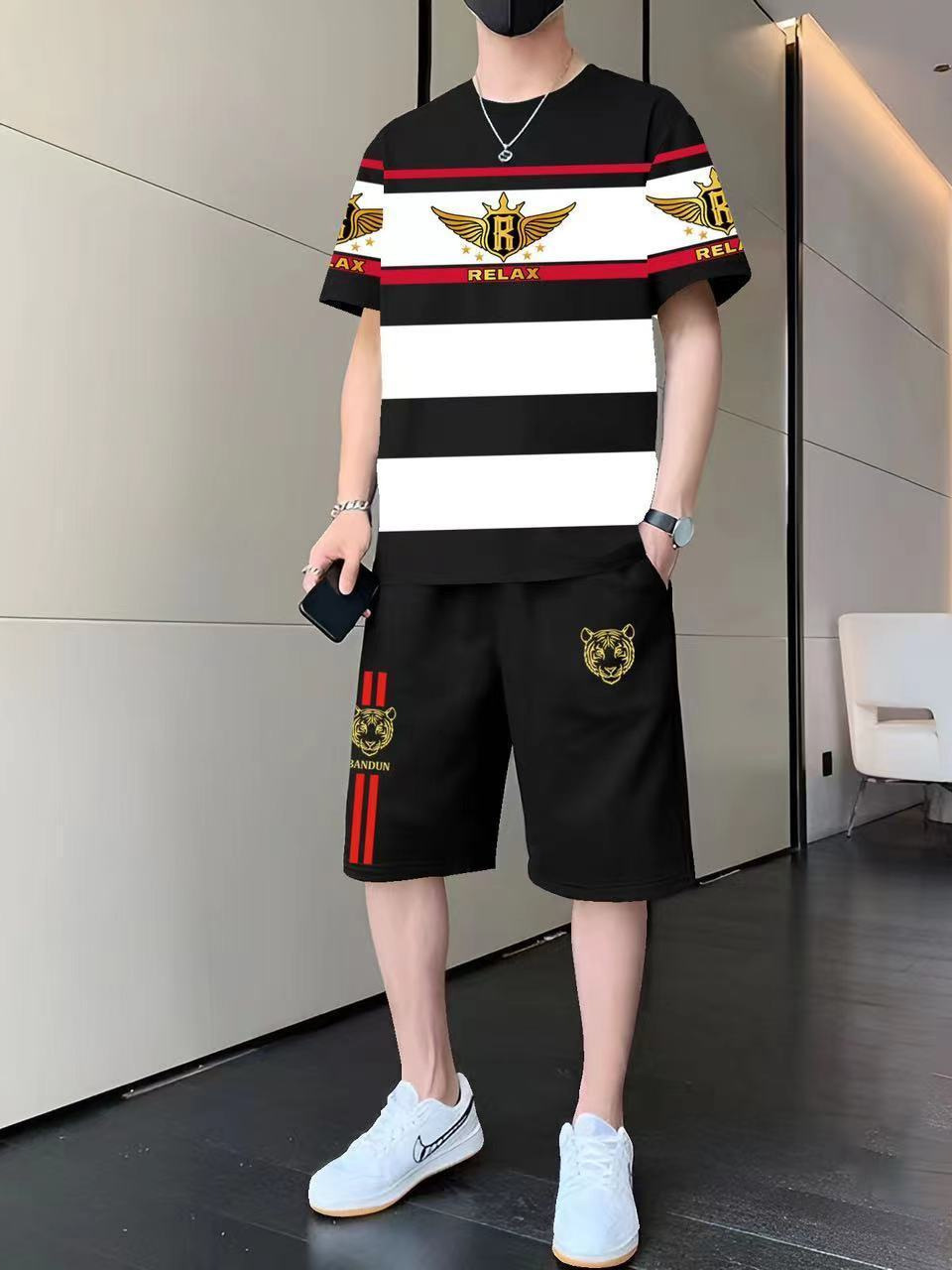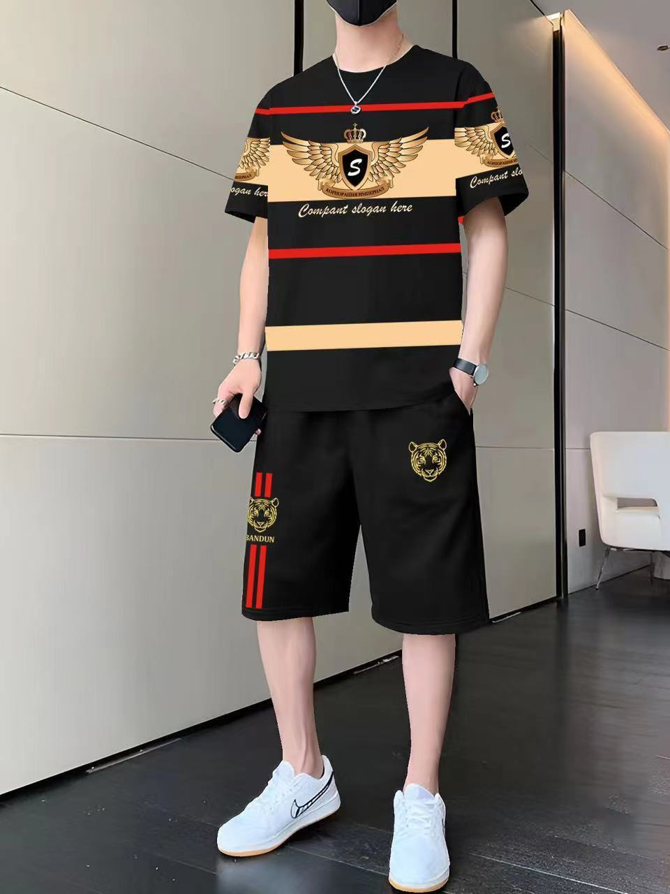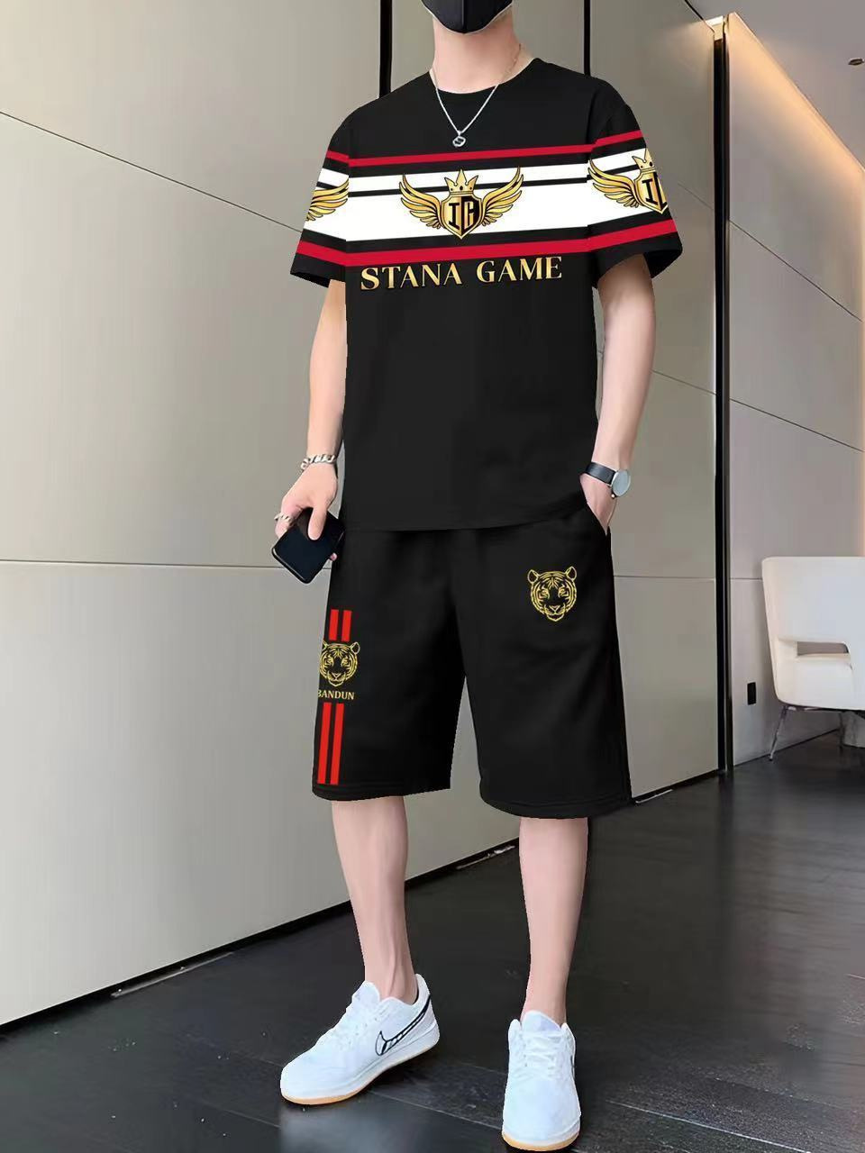 Главная страница > Летний спортивный костюм из ледяного шелка для мужчин 2025, новый модный принт, короткий рукав, шорты, свободный двухкомплектный набор