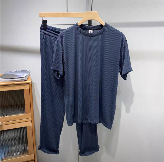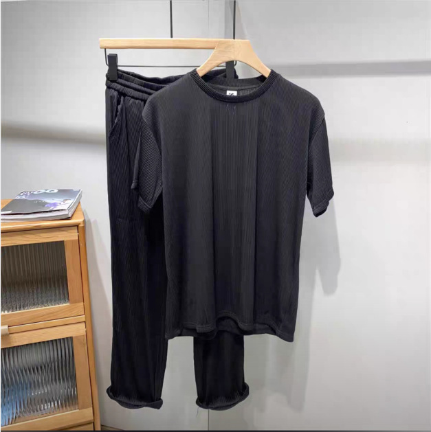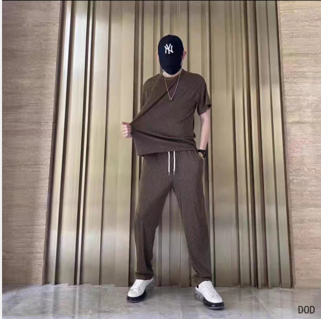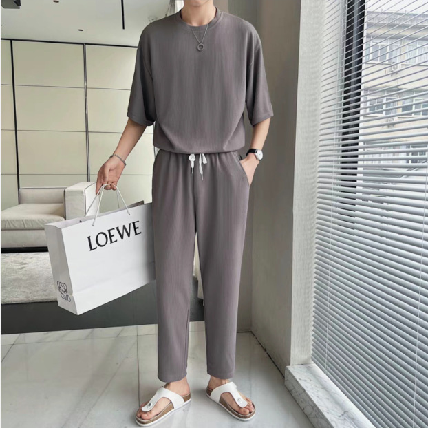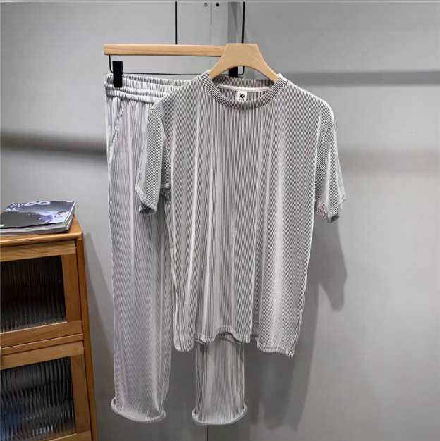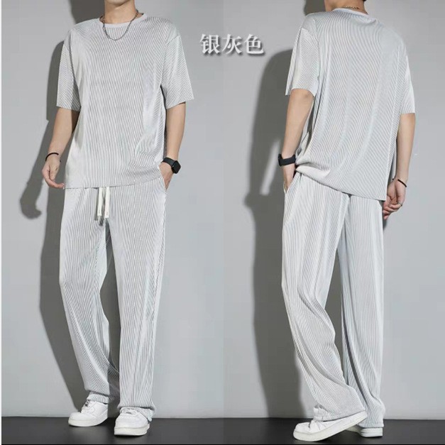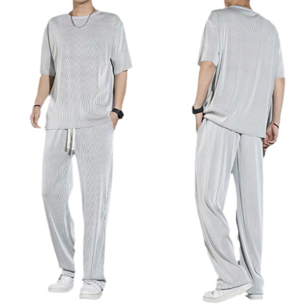 Главная страница > Спортивный костюм из ледяного шелка, мужской летний тонкий 2023, Новые повседневные длинные брюки, футболка с короткими рукавами, Быстросохнущий комплект одежды