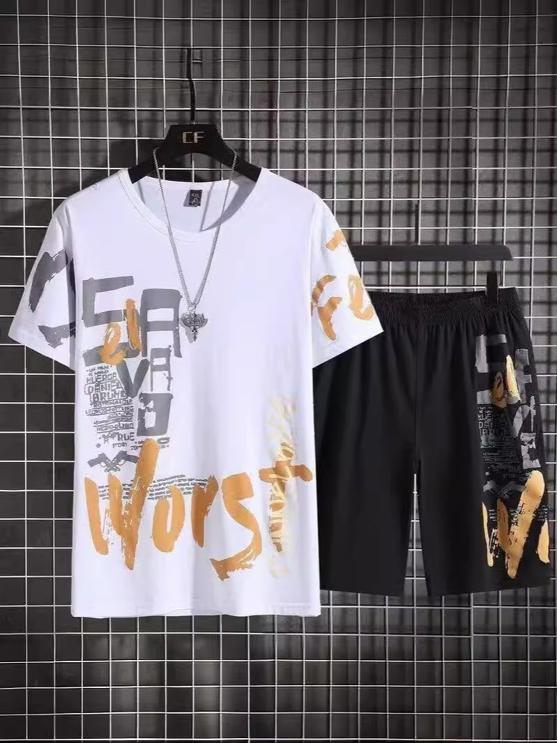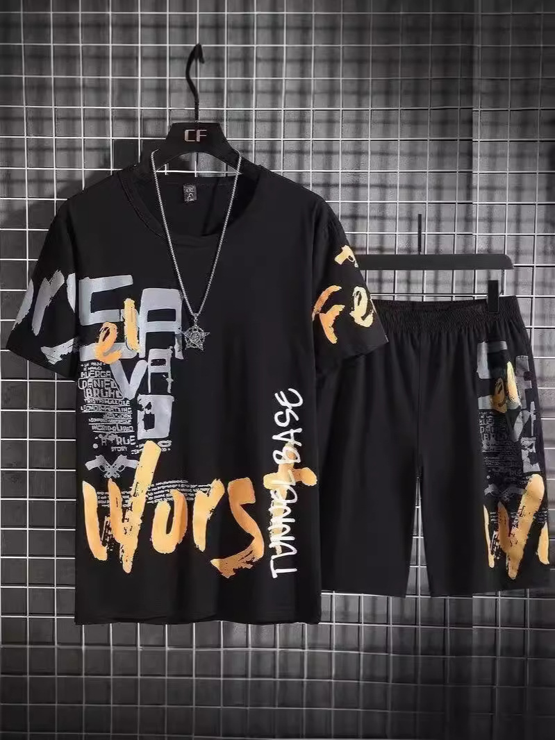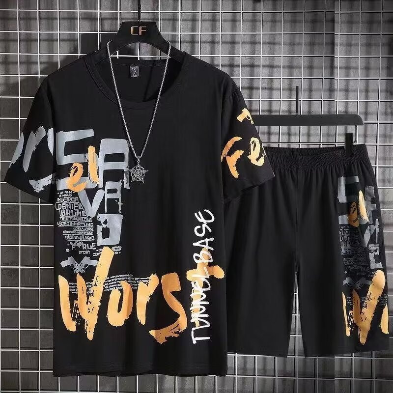 Главная страница > Набор повседневных шорт Мужские футболки с короткими рукавами мужские дикие спортивные шорты модный мужской летний набор из двух частей