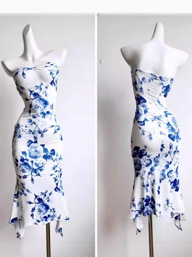 Главная страница > Новые китайские узкие нишевые платья с принтом в стиле сине-белые фарфоровые юбки с рыбьим хвостом