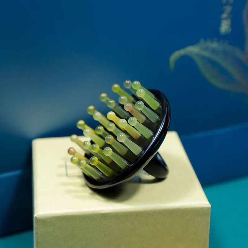Массажная расческа с кольцом из зеленого сандалового дерева