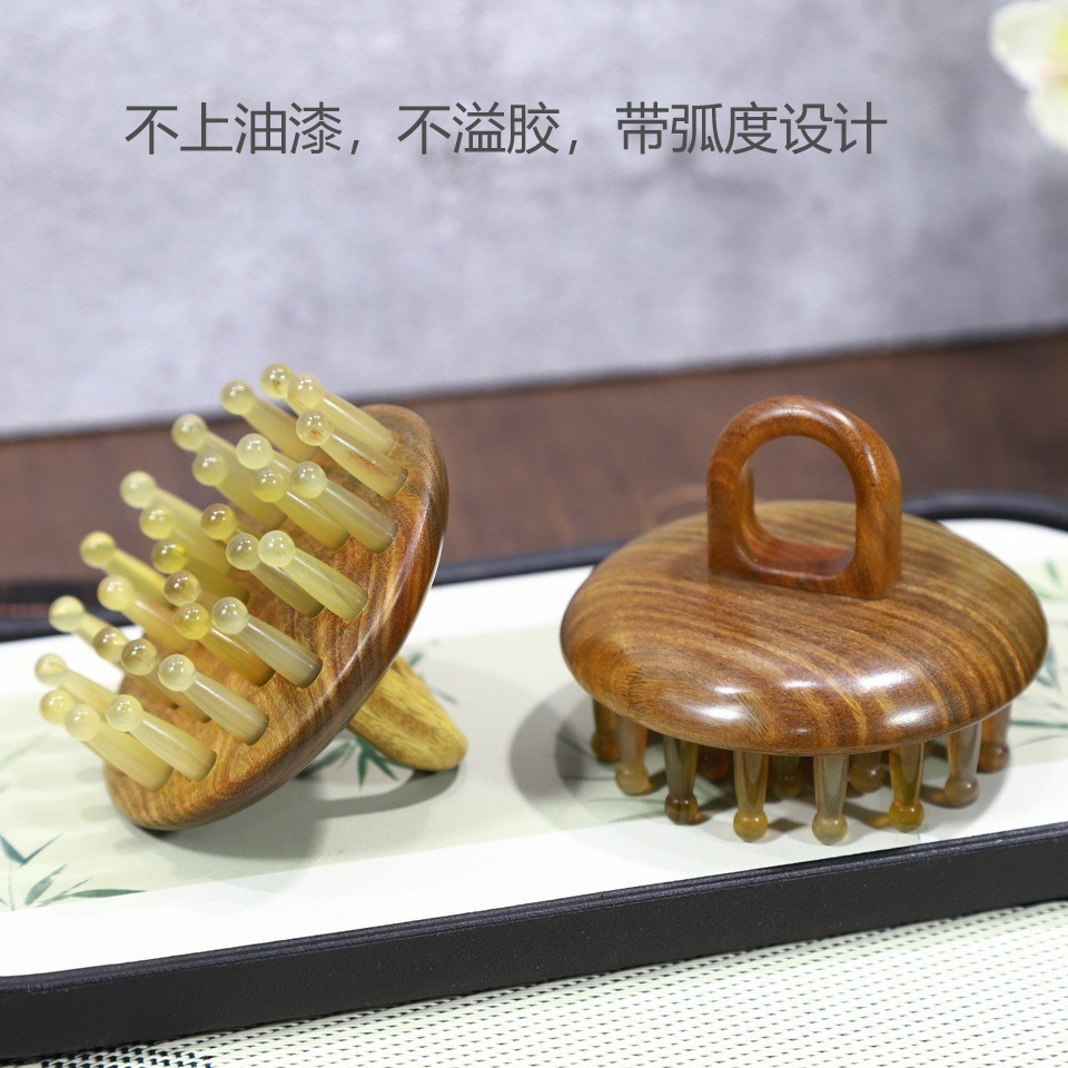 Массажная расческа из сандалового дерева с колпаком и рогом