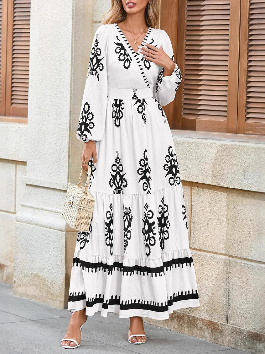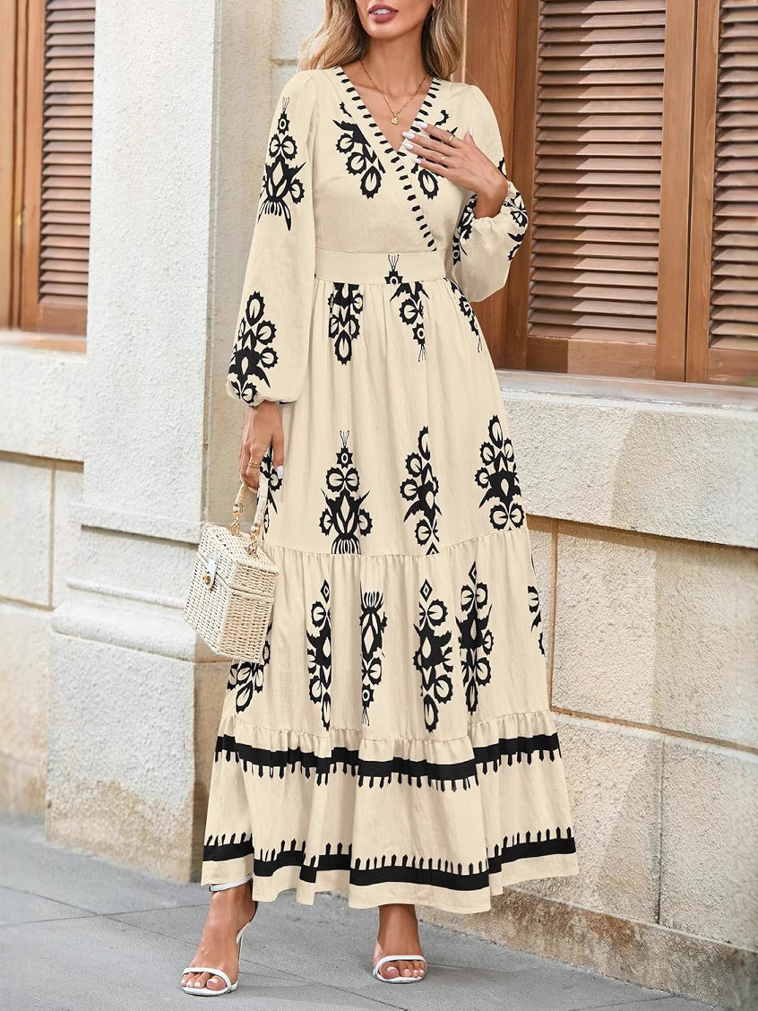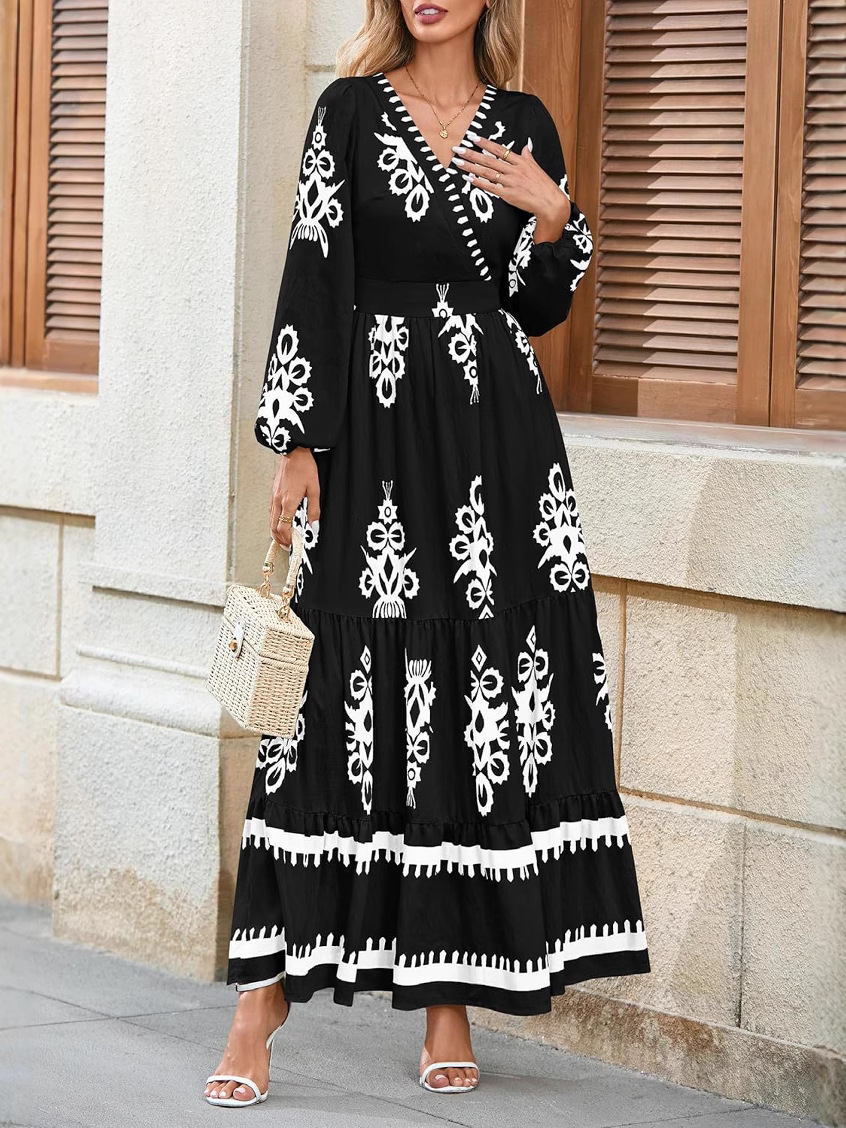 Главная страница > Европейское и американское кросс-бордерное платье 2025 года, богемное цветочное платье с длинными рукавами и V-образным вырезом, элегантное пляжное длинное платье для женщин