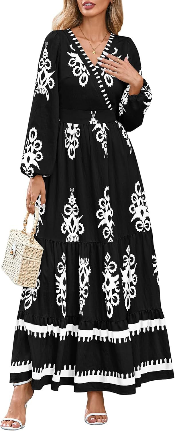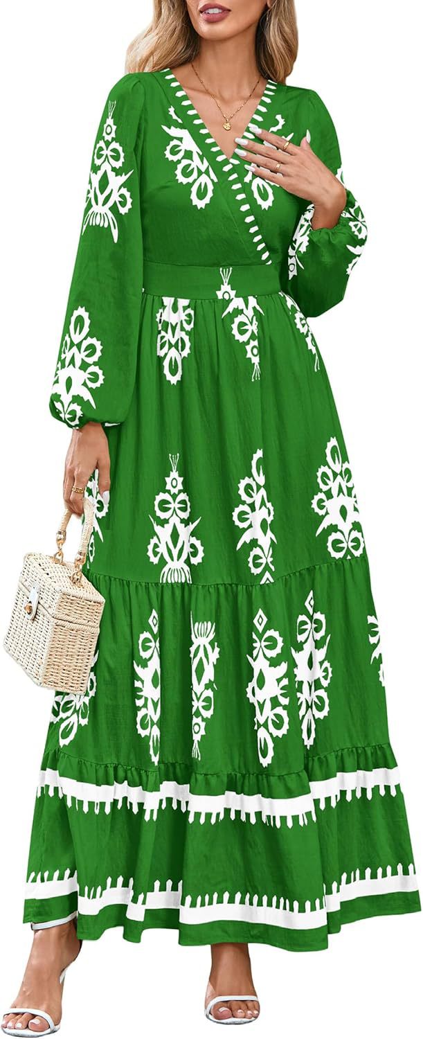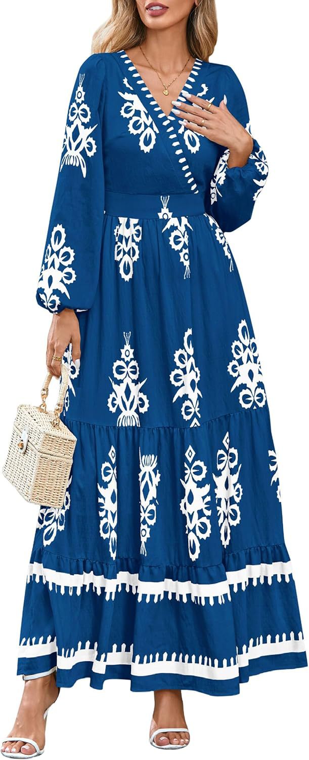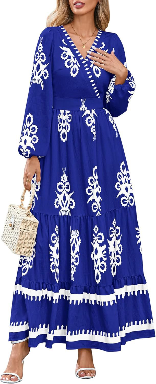 Главная страница > Европейское и американское кросс-бордерное платье 2025 года, богемное цветочное платье с длинными рукавами и V-образным вырезом, элегантное пляжное длинное платье для женщин