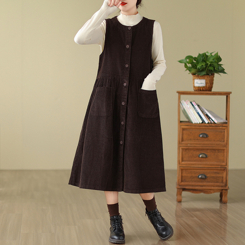 Главная страница > Женское модное свободное платье-жилет из вельвета на пуговицах, осенняя коллекция 2025, 4 цвета, омолаживающий эффект